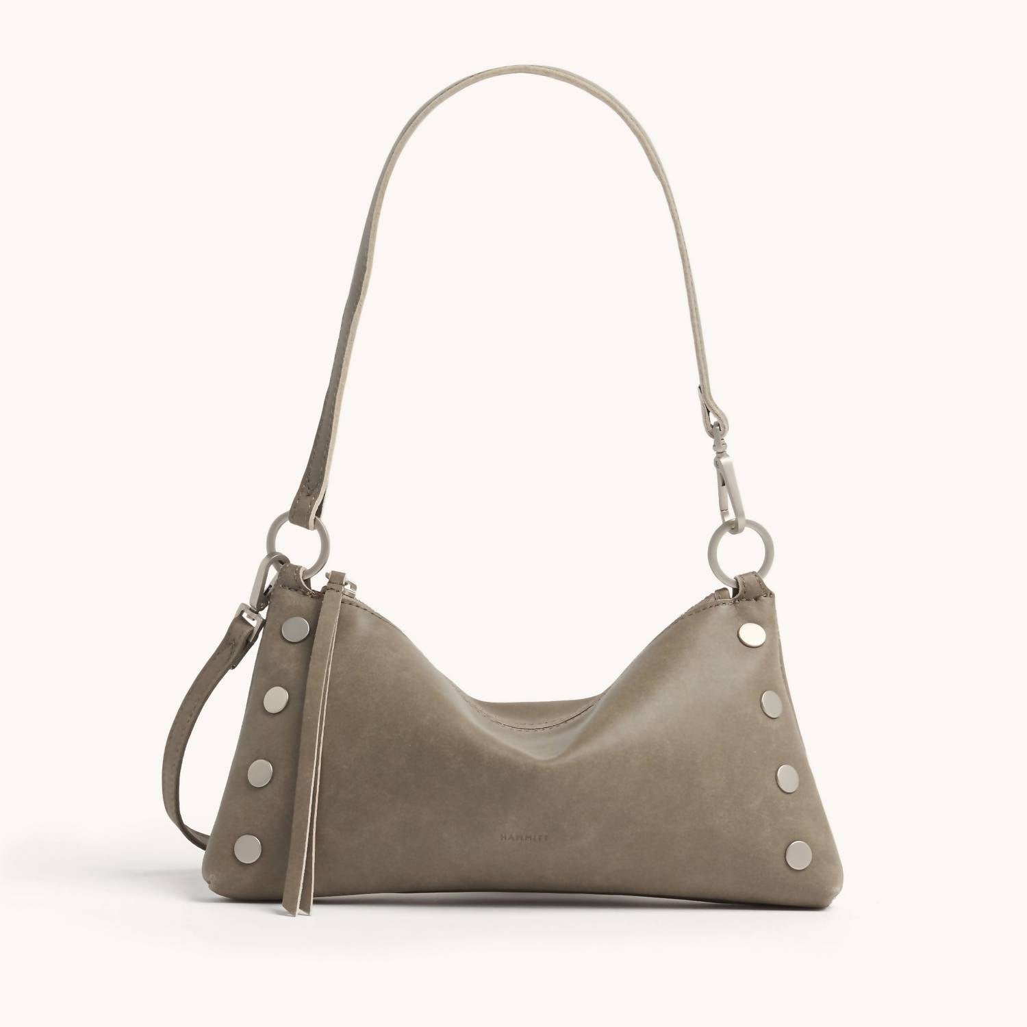 Discover the Women's Kyle Handbag by Hammitt, a stylish choice in Pewter/Silver designed for modern elegance. This shoulder bag is crafted from high-quality leather, offering both durability and luxury. With a size of 1.25" in width and 5.75" in height, it's the perfect accessory for carrying your essentials. Elevate your outfit with this timeless piece that embodies sophistication and practicality.