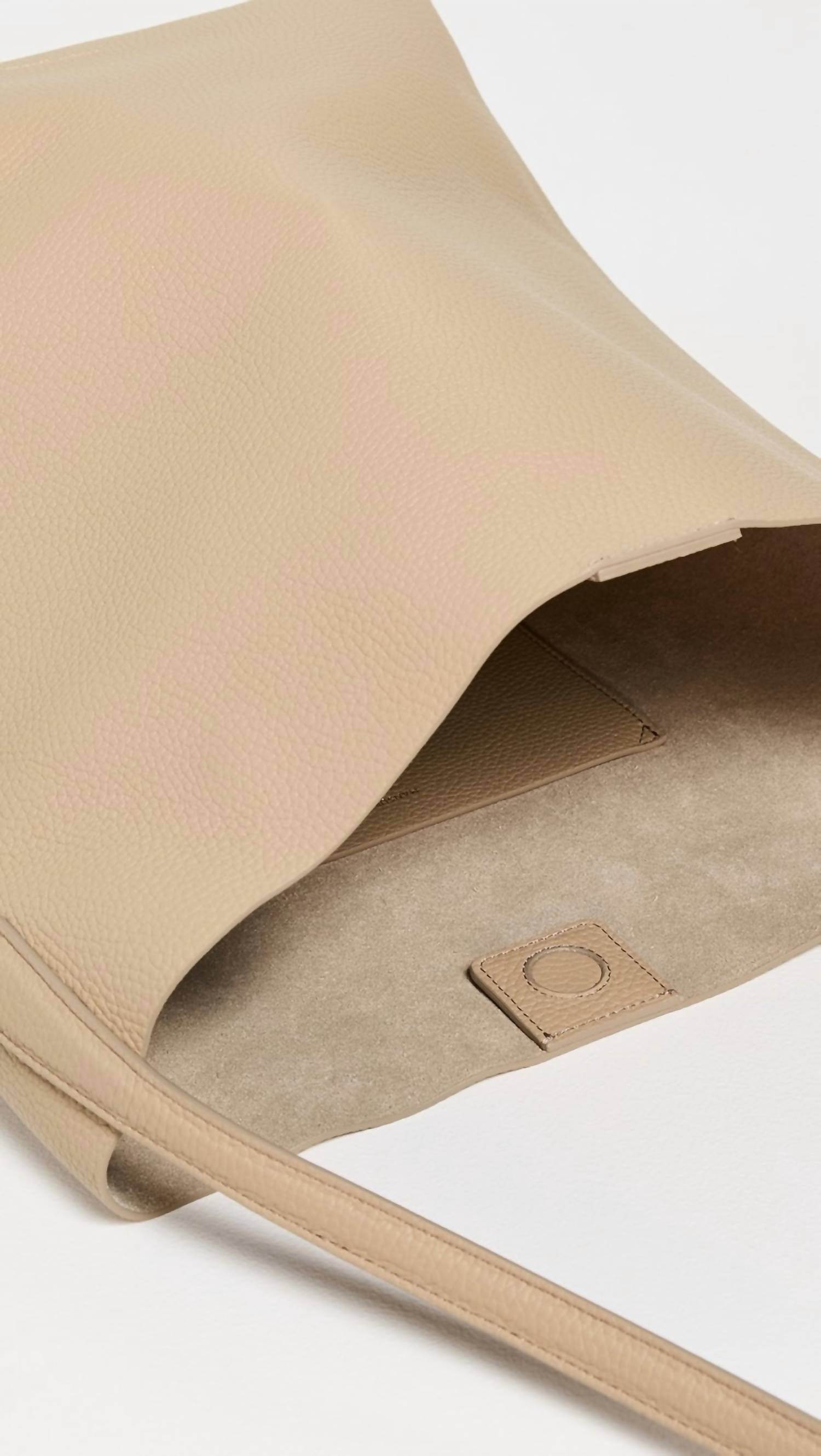 Discover the Women's Everyday Cabas by Mansur Gavriel, a sophisticated shoulder bag crafted in Italy from luxurious warm grey pebbled cowhide leather. This elegant piece features an open top with a convenient magnetic closure and includes a practical patch interior pocket. The unlined design offers a lightweight feel at 22oz / 0.62kg, making it perfect for daily use. With dimensions of 13.5in height, 15.75in length, 6.25in depth, and a handle drop of 10.75in, it embodies both style and functionality.