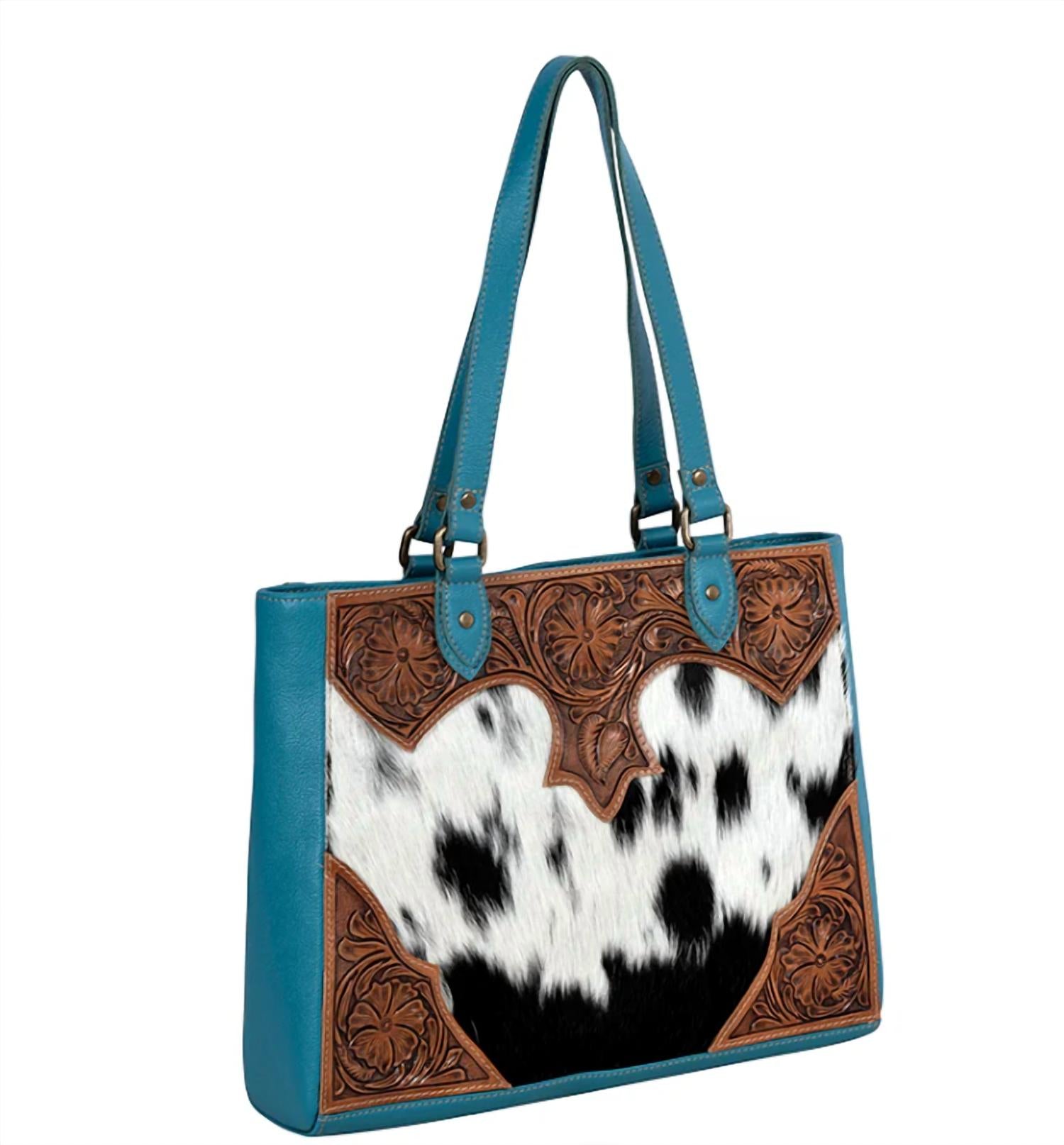 The Women's Hand Tooled Bag by Myra Bags is a stunning shoulder bag in a captivating Turquoise Hide. Crafted with meticulous attention to detail, this bag is as functional as it is fashionable. Its unique hand-tooled design sets it apart, making it a must-have accessory for any apparel collection. The perfect blend of artistry and utility, it's a charming choice for elevating any ensemble.