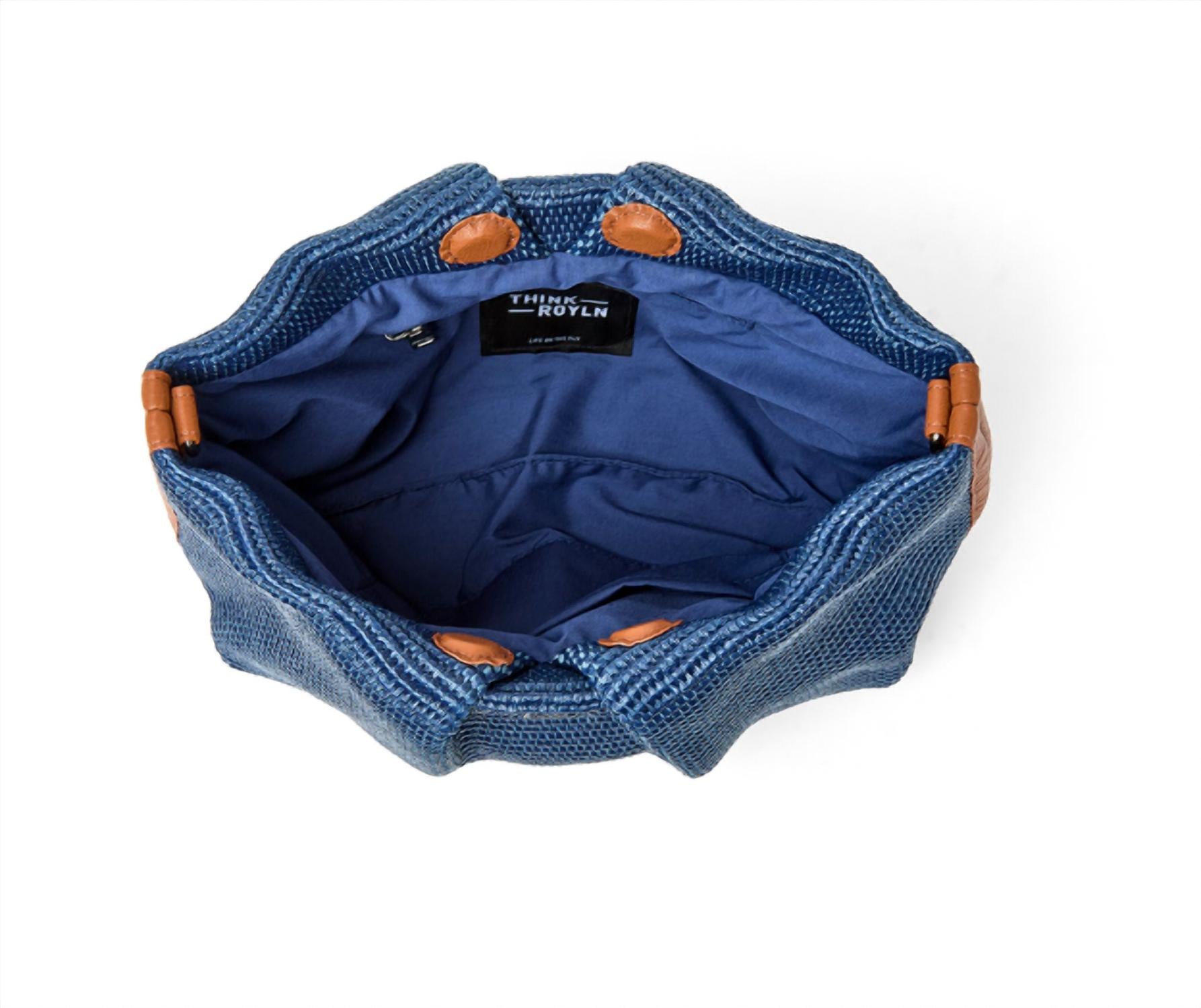 Introducing the Women's Savannah Raffia Bag by THINK ROYLN, a stylish accessory in a stunning blue. Crafted from quality raffia, this shoulder bag is perfect for adding a touch of elegance to any outfit. Elevate your accessory collection with this chic and functional design.