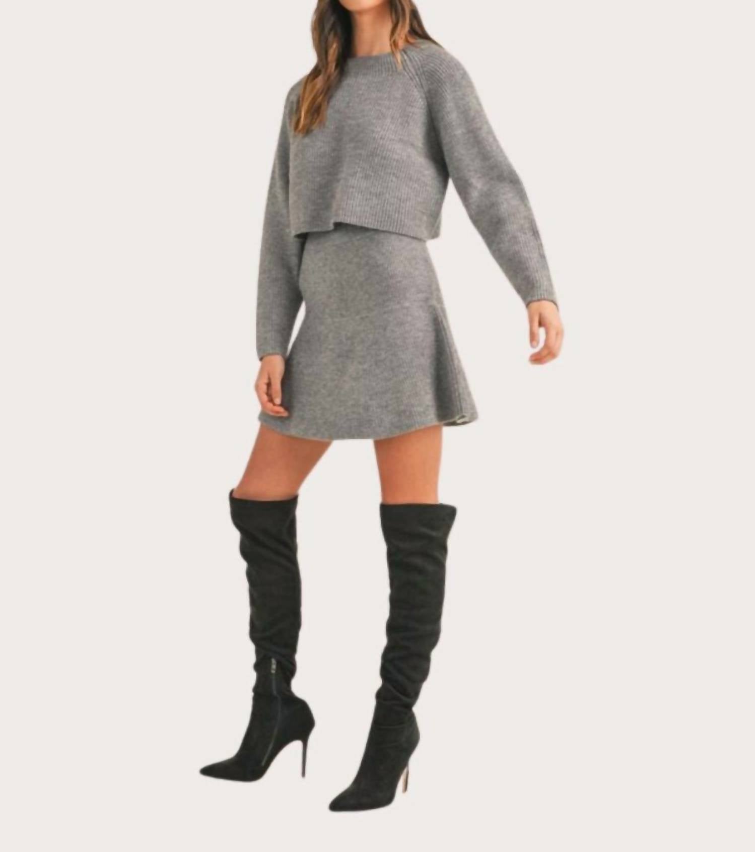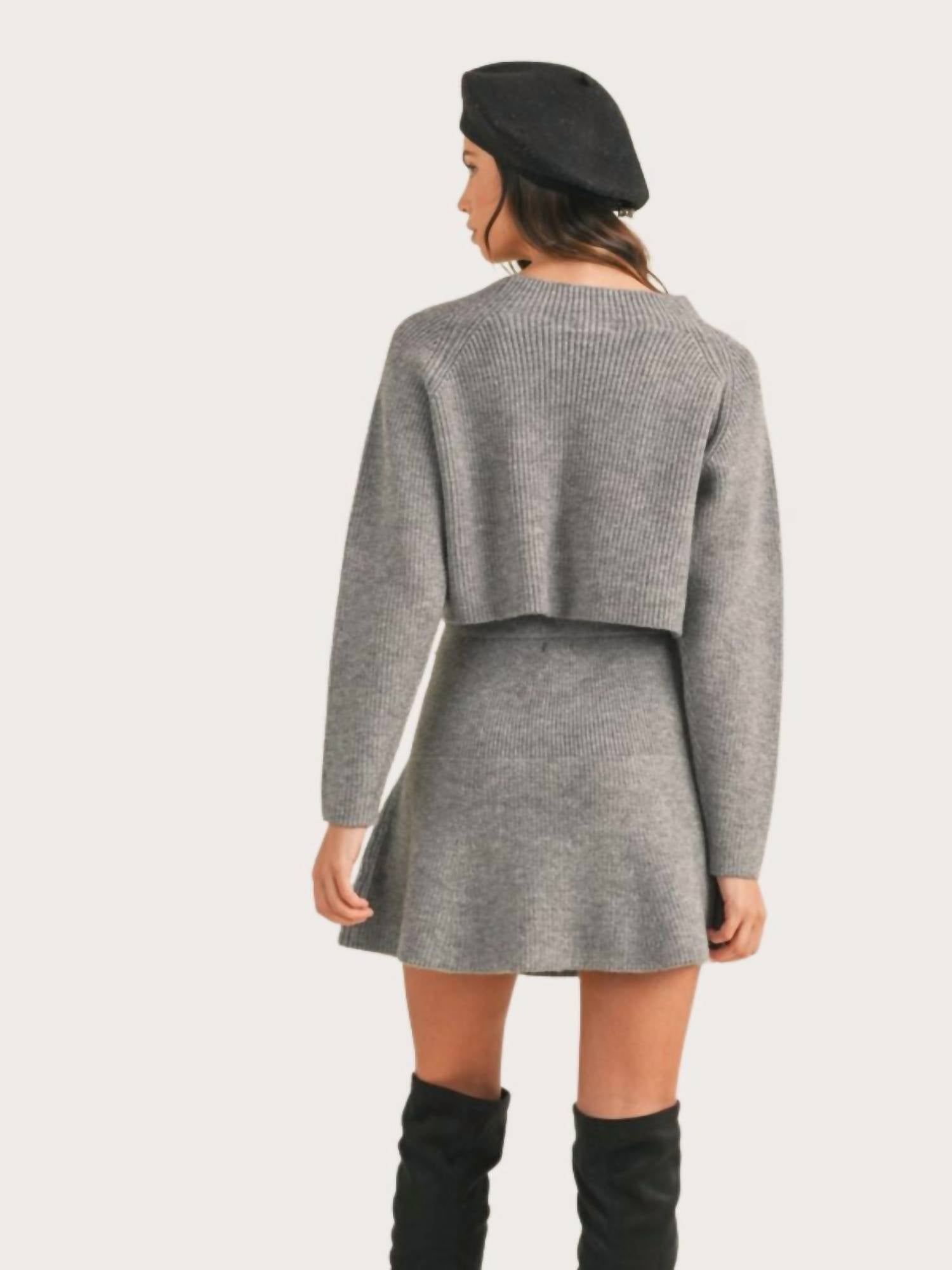 Discover playful elegance with the Courtney Sweater Flare Skirt by MABLE, where comfort meets style. This unique skirt comes in a solid charcoal color with a cozy sweater material perfect for those chilly days. Experience the ease of a pull-on closure that's ideal for pairing with your favorite boots and chunky sweaters. Originating from the circle & skater category, it's designed without pockets for a streamlined silhouette.