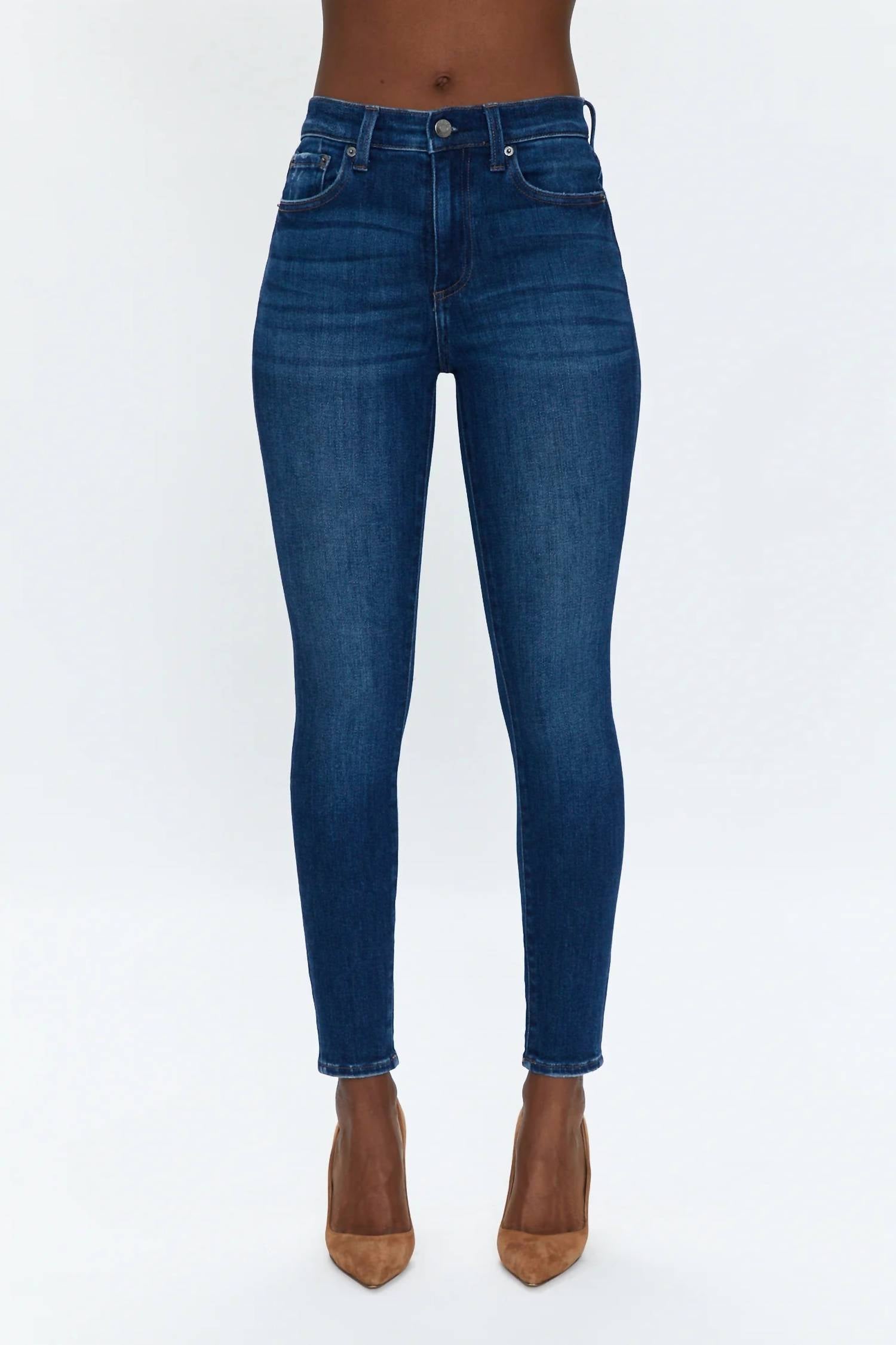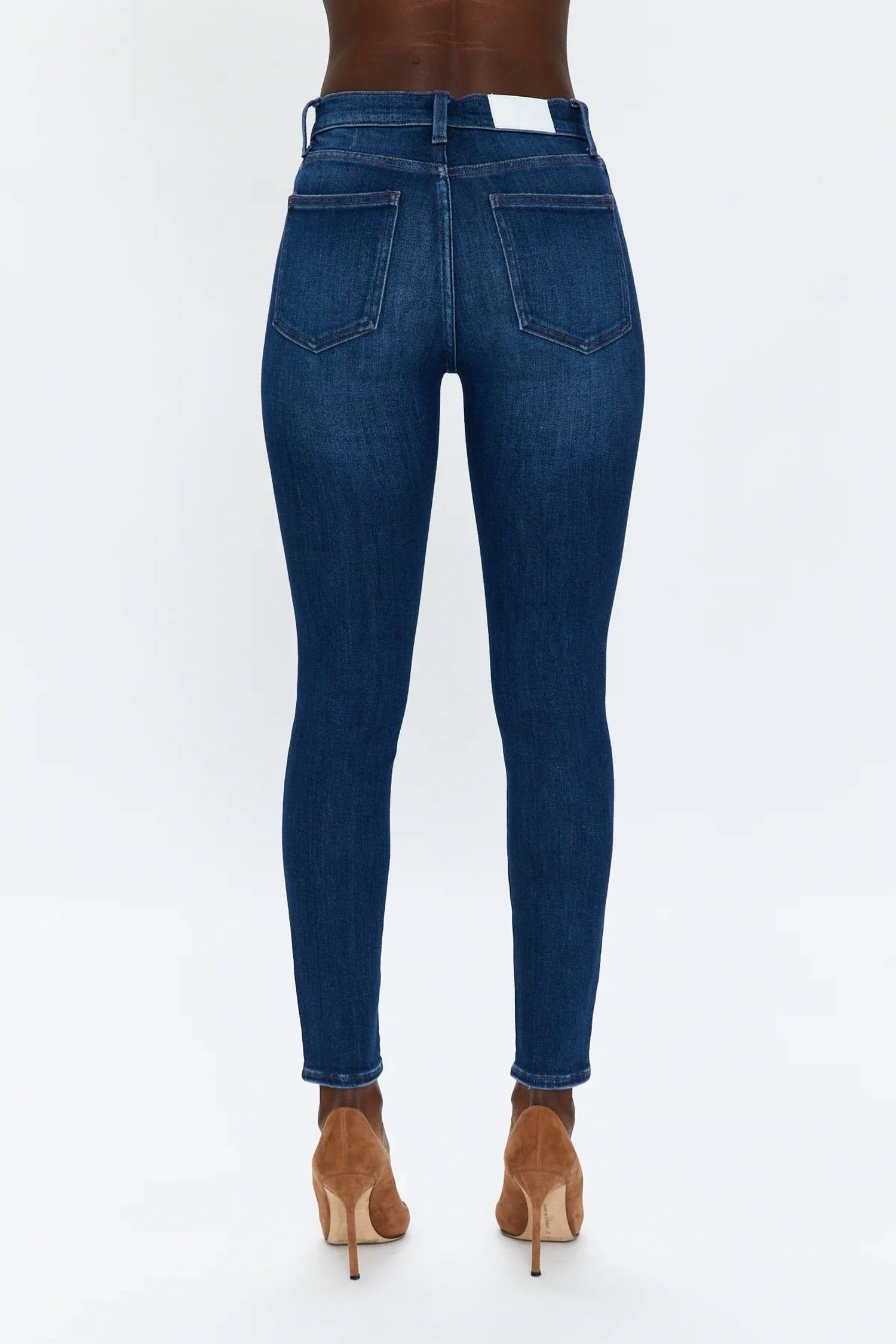 Showcase a tried and true skinny silhouette made from super stretch denim that flatters your figure beautifully. With a composition of 95% Cotton, 4% Elasterell, and 1% Spandex. Feature a deep blue denim wash with lasered whiskering for a softly lived-in look. Rise is set at 10.5", with an inseam of 28" and a leg opening of 10". Perfect for bringing effortless style to any ensemble.