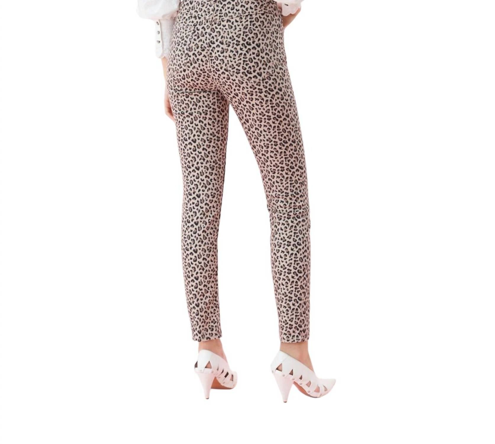 Discover the Ocelot Ines Leopard Print Skinny Jeans by Rebecca Taylor, designed to make a statement with their bold animal spots and flattering high waist. These beige, figure-enhancing jeans boast a tapered ankle hem and provide comfort with a composition of 94% cotton, 4% polyester, and 2% elastane. Measurement specifics include an inseam of 28", a length of 38", a front rise of 9.25", a back rise of 13.25", a waist of 12.25", and a leg opening at the hip of 9.5". Easy to care for, simply machine wash and tumble dry. Whether you're dressing up or down, these jeans offer the perfect blend of style and versatility.