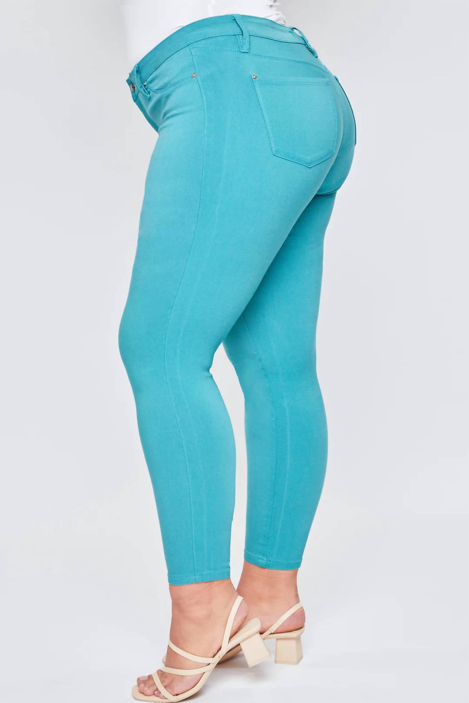 Everyone needs a good pair of skinny jeans and this is a style you'll keep reaching for no matter the season. Embrace sleek style with the Sea Green Hyperstretch Skinny Jeans by YMI, crafted for women seeking both comfort and trendiness. These mid-rise jeans boast a cotton blend composition of 70% Cotton, 26% Nylon, and 4% Spandex, delivering a soft and flexible feel. With a practical zip closure, faux front pockets, and functional back pockets, they blend function and fashion effortlessly. Measurements based on size S provide a 9" rise, 30" inseam, and 9" leg opening, while care instructions recommend machine wash cold and tumble dry low.