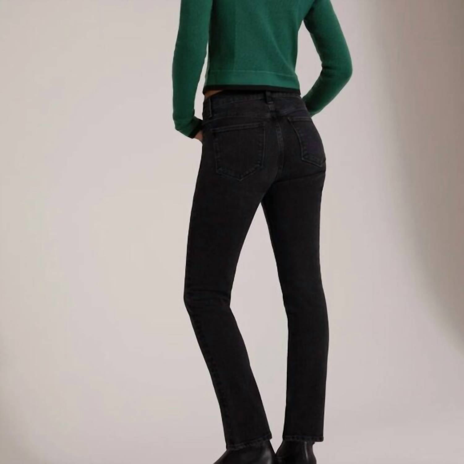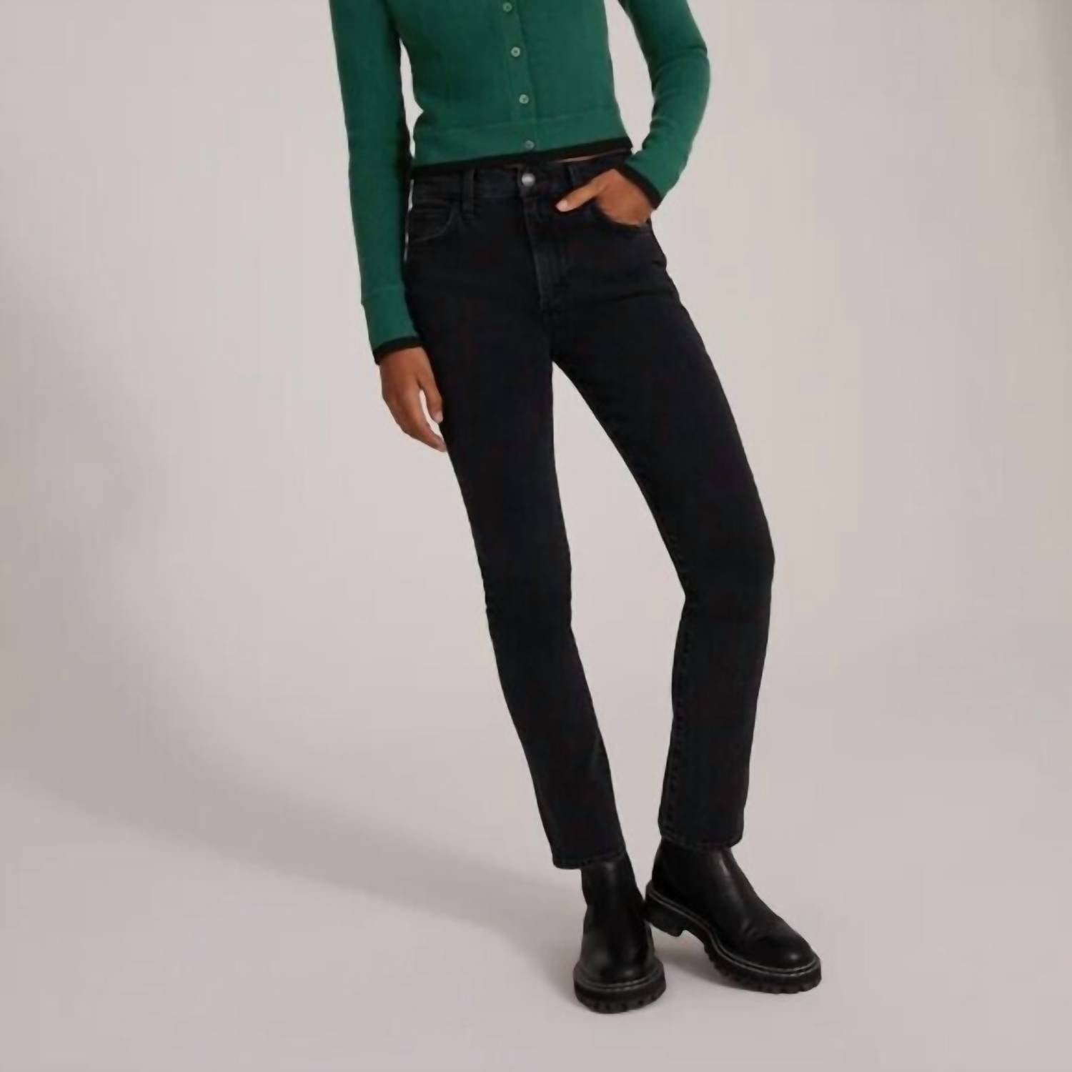 Everyone needs a good pair of skinny jeans and this is a style you'll keep reaching for no matter the season. Introducing the Erin High Rise Slim Straight Jeans by Favorite Daughter, a must-have for any wardrobe. These jeans boast a high-rise waist with a slim straight leg, crafted from 98% Cotton and 2% Elastane for just the right amount of stretch. This Boulder wash denim offers a dark, solid appearance with a button closure and is adorned with Favorite Daughter's signature embroidery. Designed with five-pocket styling, these ankle-length jeans are both stylish and comfortable. Care: Machine wash and tumble dry for easy maintenance.
