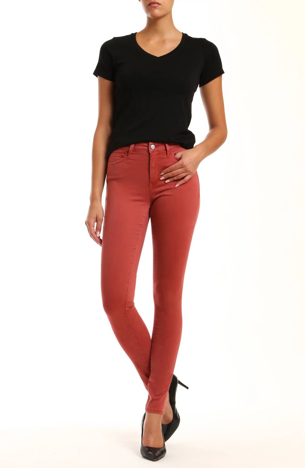 A skinny jean that is both flatering and comfortable. We love this style because it works great with boots, or without! Experience the epitome of comfort and style with the Mavi Alissa Sateen Twill Jeans in a striking brick tone. These super-skinny jeans, tailored for a sleek look, offer a comfortable stretch with a cotton blend composition of 95% cotton and 5% elastane. With a high-rise fit, they feature a 10" front rise, a 15" back rise, and a 28" inseam, ensuring a perfect slim-fit silhouette. Closure: Zip fly with button. Care instructions: Machine wash and lay flat to dry.