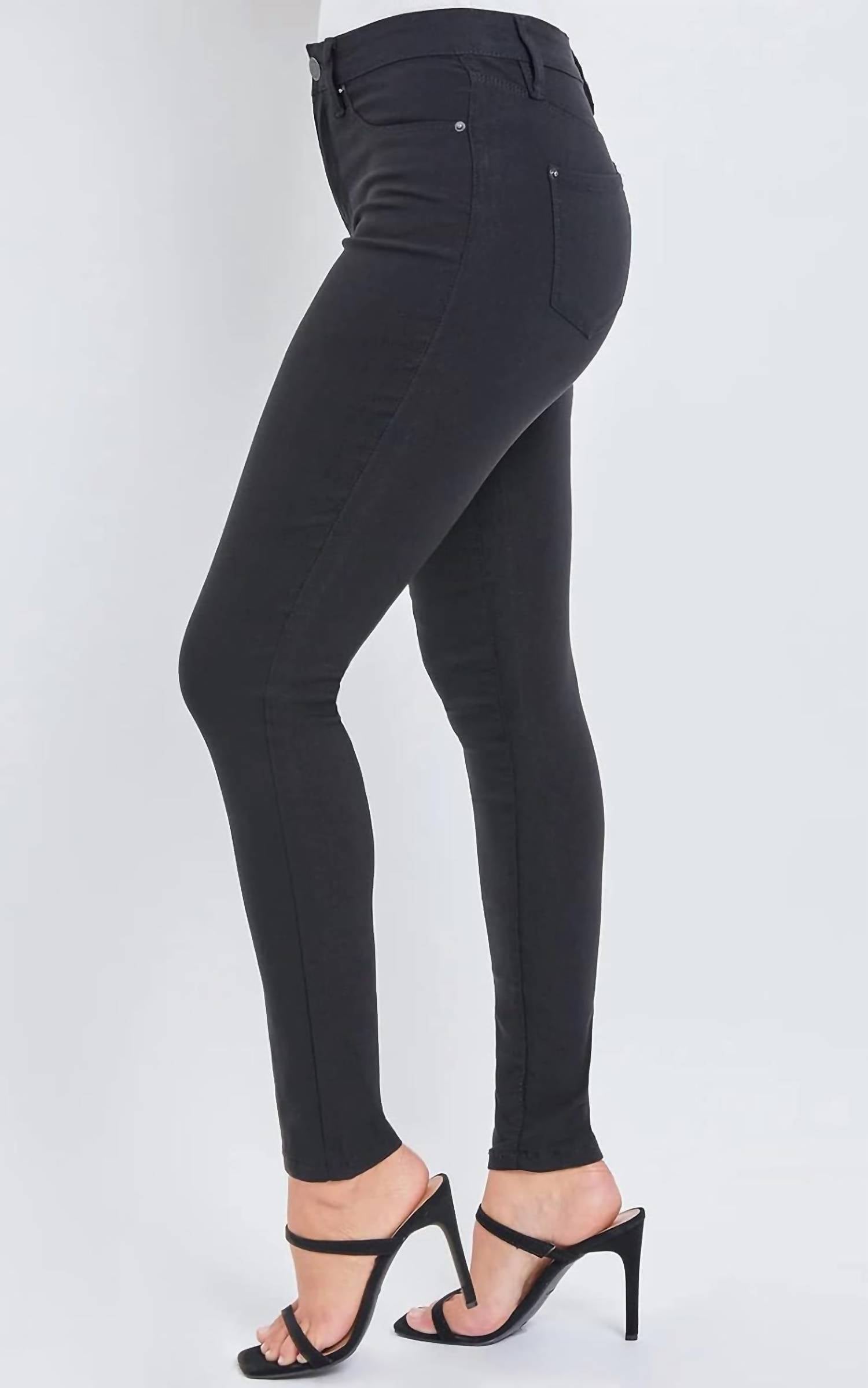 A skinny jean that is both flatering and comfortable. We love this style because it works great with boots, or without! Experience the ultimate in comfort and style with the Mid-rise Hyperstretch Skinny Jeans by YMI, crafted for women who love sleek, chic looks. These black skinny jeans feature a solid pattern, composed of a high-performance cotton blend (70% Cotton, 26% Nylon, 4% Spandex) that moves with you. Designed with a mid-rise fit, functional pockets, and a button closure, they're perfect for summer streetwear or a dinner party. Care is simple with machine wash instructions, allowing easy maintenance for your busy lifestyle.