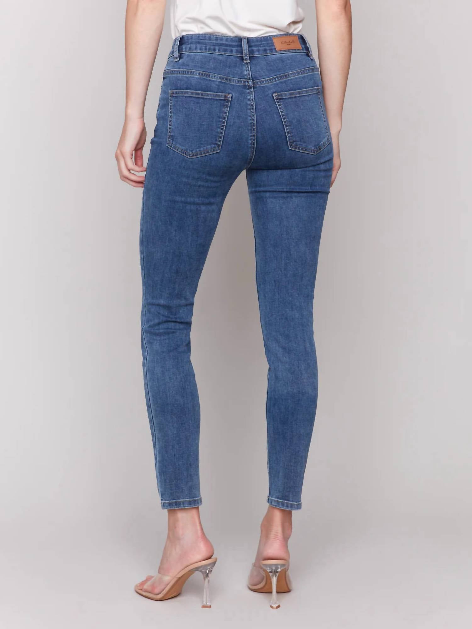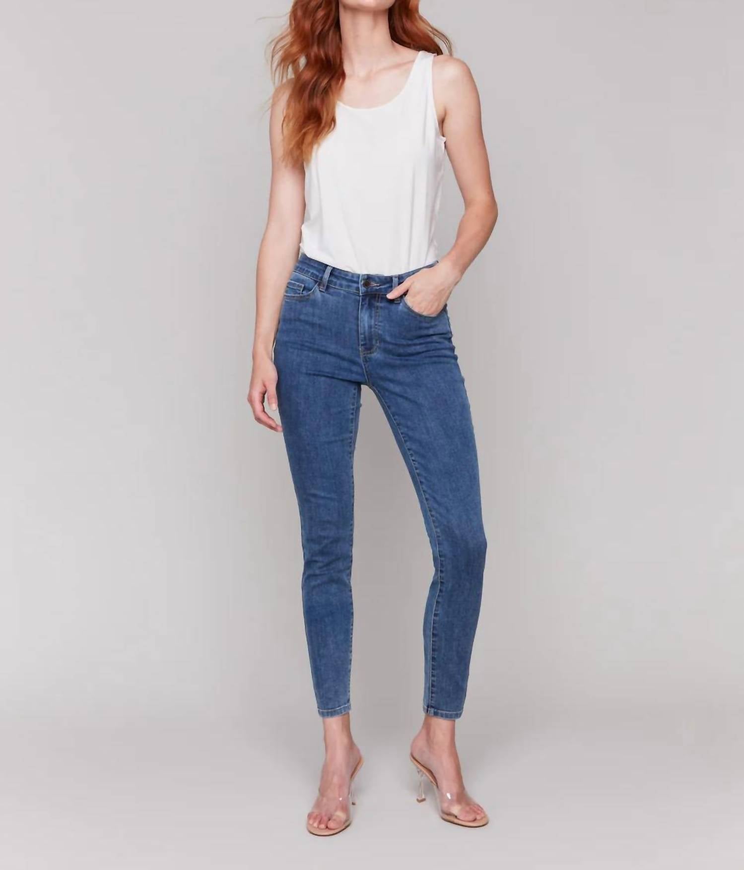 The perfect skinny jeans to wear with your favorite boots this season! Upgrade your denim collection with the Carine Skinny Jeans by CHARLIE B, in a chic Indigo blue. Crafted from 73% cotton, 23% polyester, 3% viscose, and 1% spandex, these skinny fit jeans offer a flattering regular length and 30-inch inseam with a 5 1/4 inch leg opening. Designed with a five-pocket style and button closure, they provide a versatile fit suitable for both casual and chic occasions. For care, machine wash in cold water, avoid bleach, hang to dry, and iron at a low setting if needed.