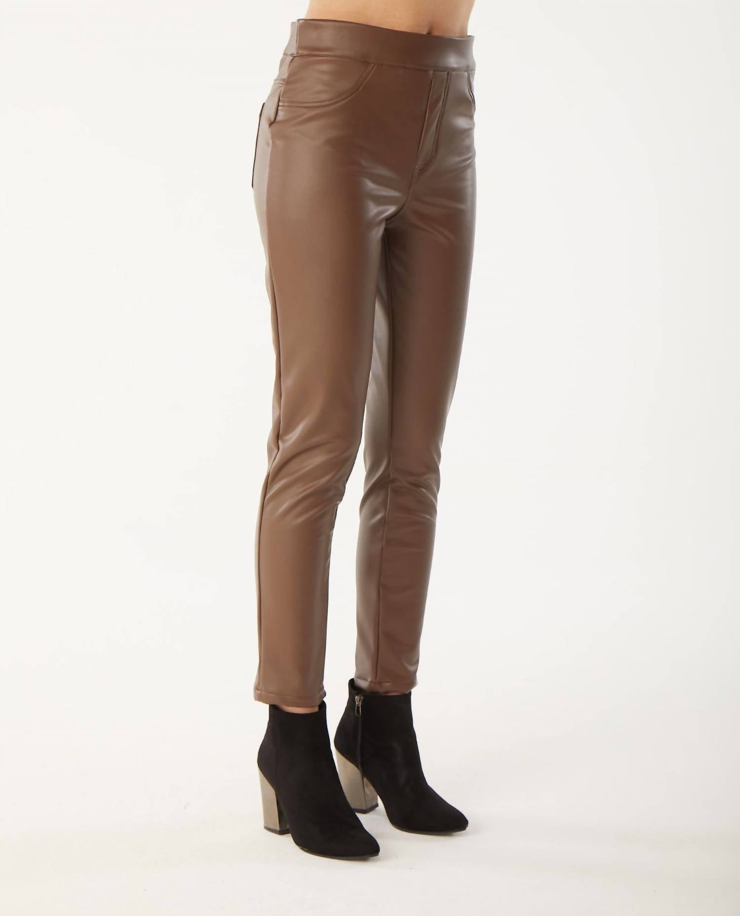 Combining style and comfort effortlessly. Crafted from 95% polyester and 5% spandex. Offering durability and stretch. Designed with a pull-on closure and high-rise waist. Feature back pockets for added functionality. Skinny leg style enhances the sleek look.