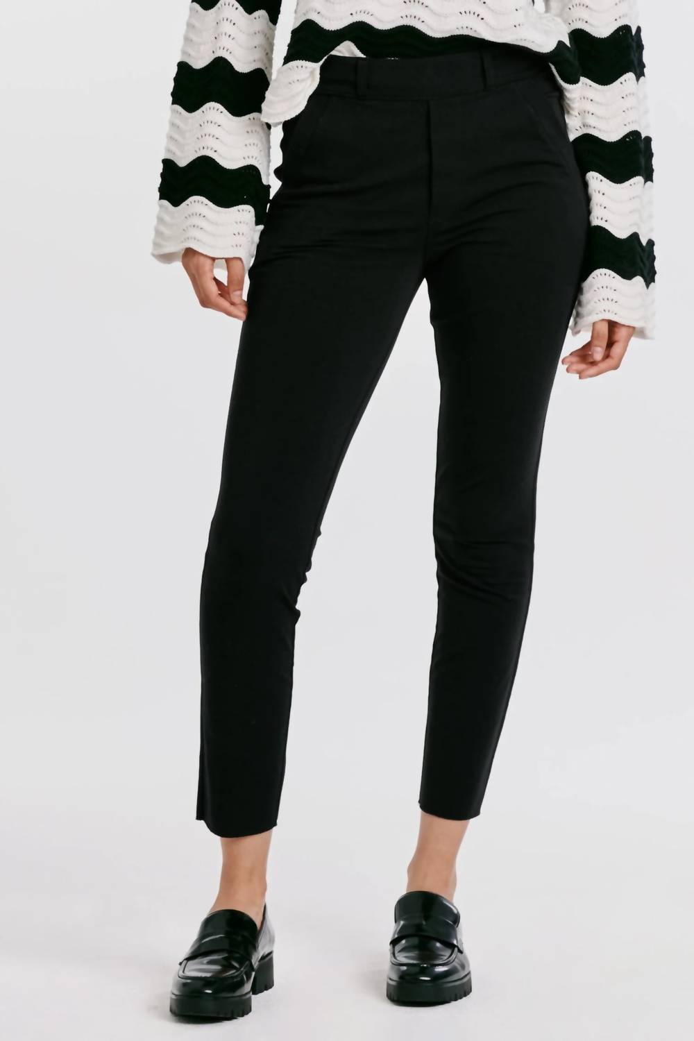 The perfect skinny pant for those stylish boots this season! Introducing the Monica Skinny Pant by DEAR JOHN DENIM, designed for sleek style in classic black. These high-rise skinny leggings are crafted from a super stretch blend of 93% cotton and 7% spandex, providing a snug fit with an irresistible shape. They feature a pull-on closure, side slant, and back welt pockets with a raw hem finish and supportive back darts. Care is effortless with machine wash cold and tumble dry low instructions. Dimensions include a 10.5" front rise, 11" leg opening, and 26" inseam for a size small. Imported for quality assurance.