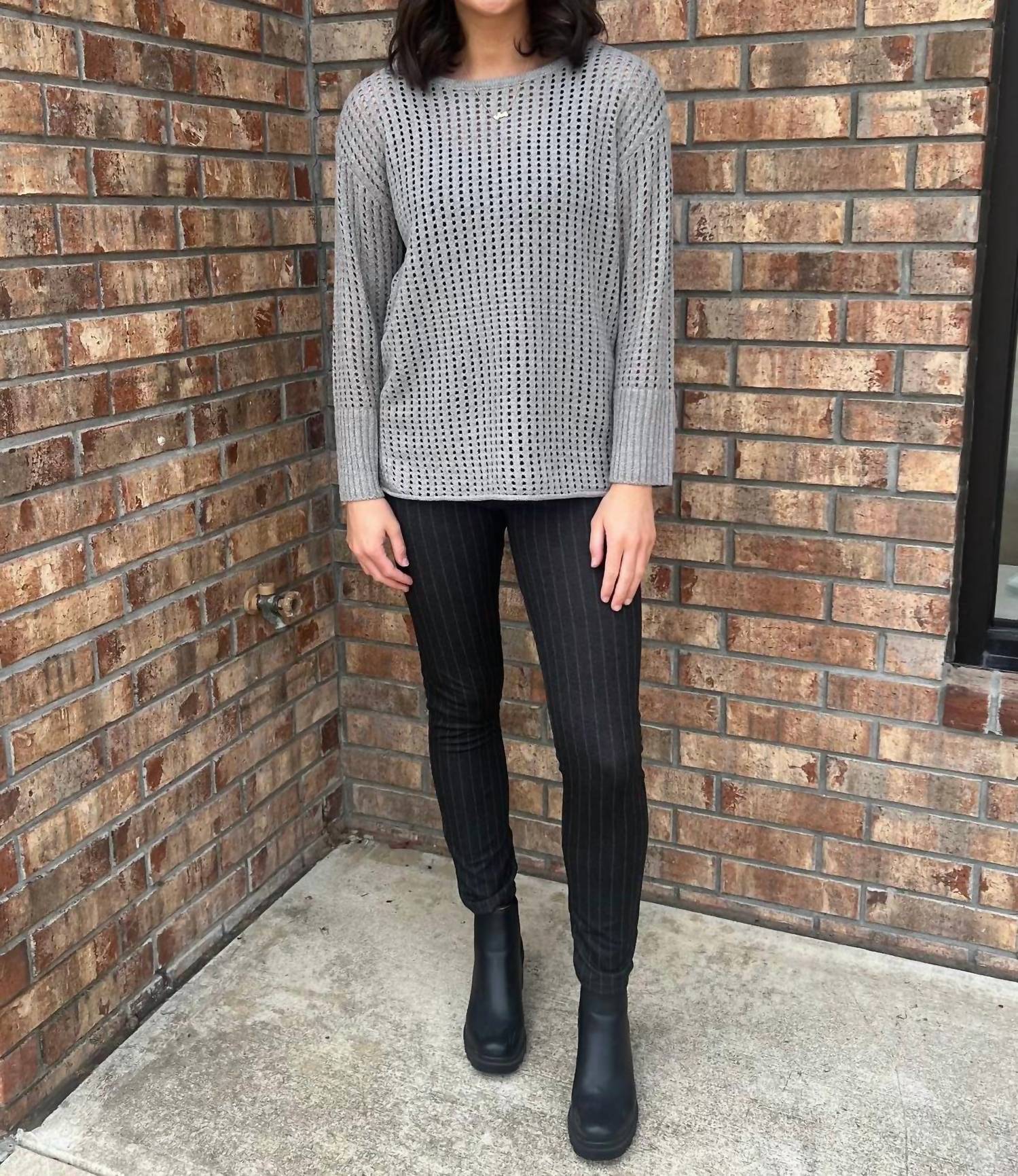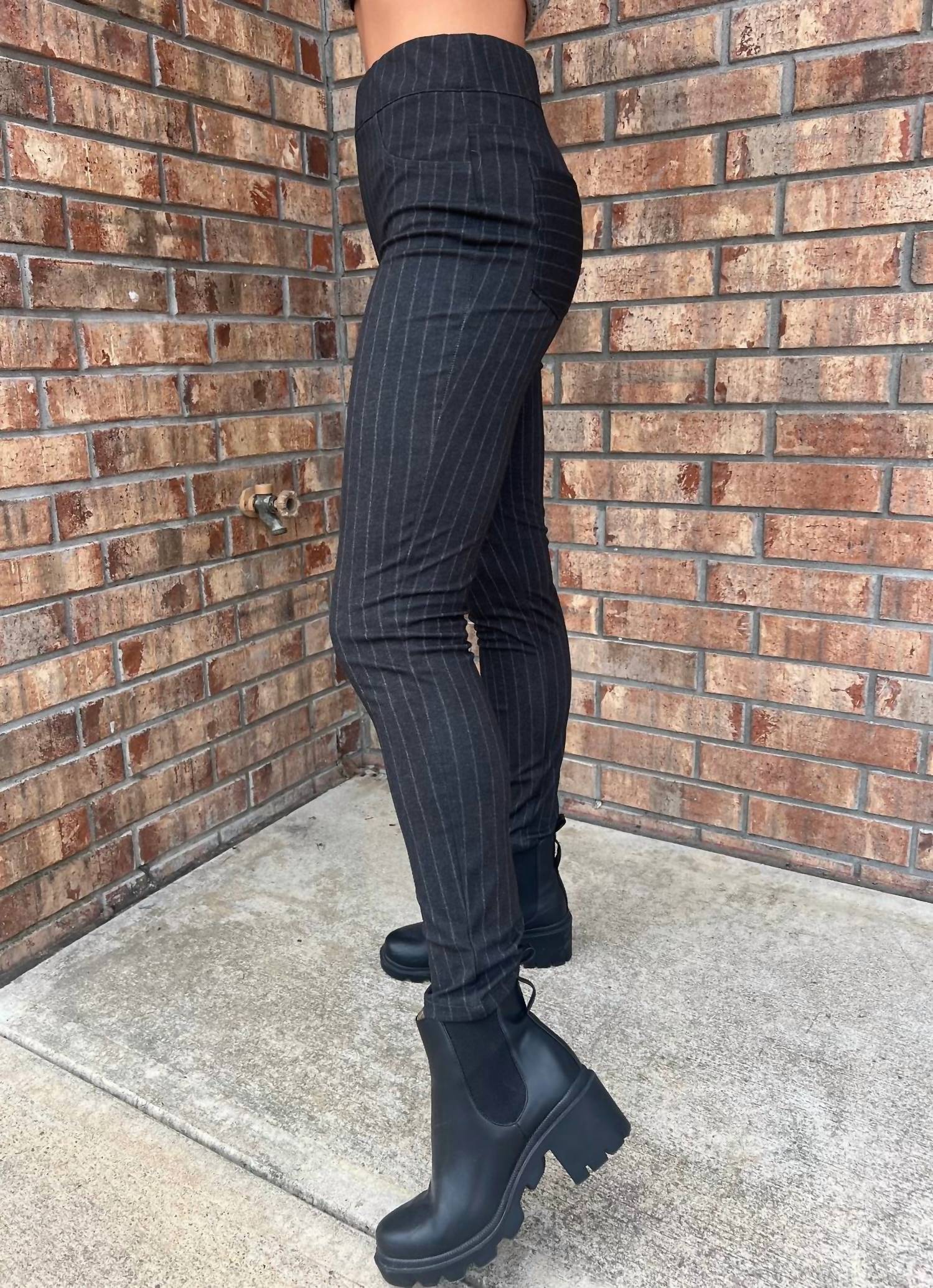 The perfect skinny pant for those stylish boots this season! Experience ultimate comfort and style with the Stripe Pull-on Ponte Pants by ISLE by Melis Kozan, tailored for the modern woman. These charcoal/gray pants feature a high 12" rise and a versatile 28.5" inseam, complete with back pockets for added functionality. Crafted from 65% polyester, 30% nylon, and 5% spandex, they provide a ponte knit stretch with a convenient pull-on closure. Simply machine wash cold and lay flat to dry.