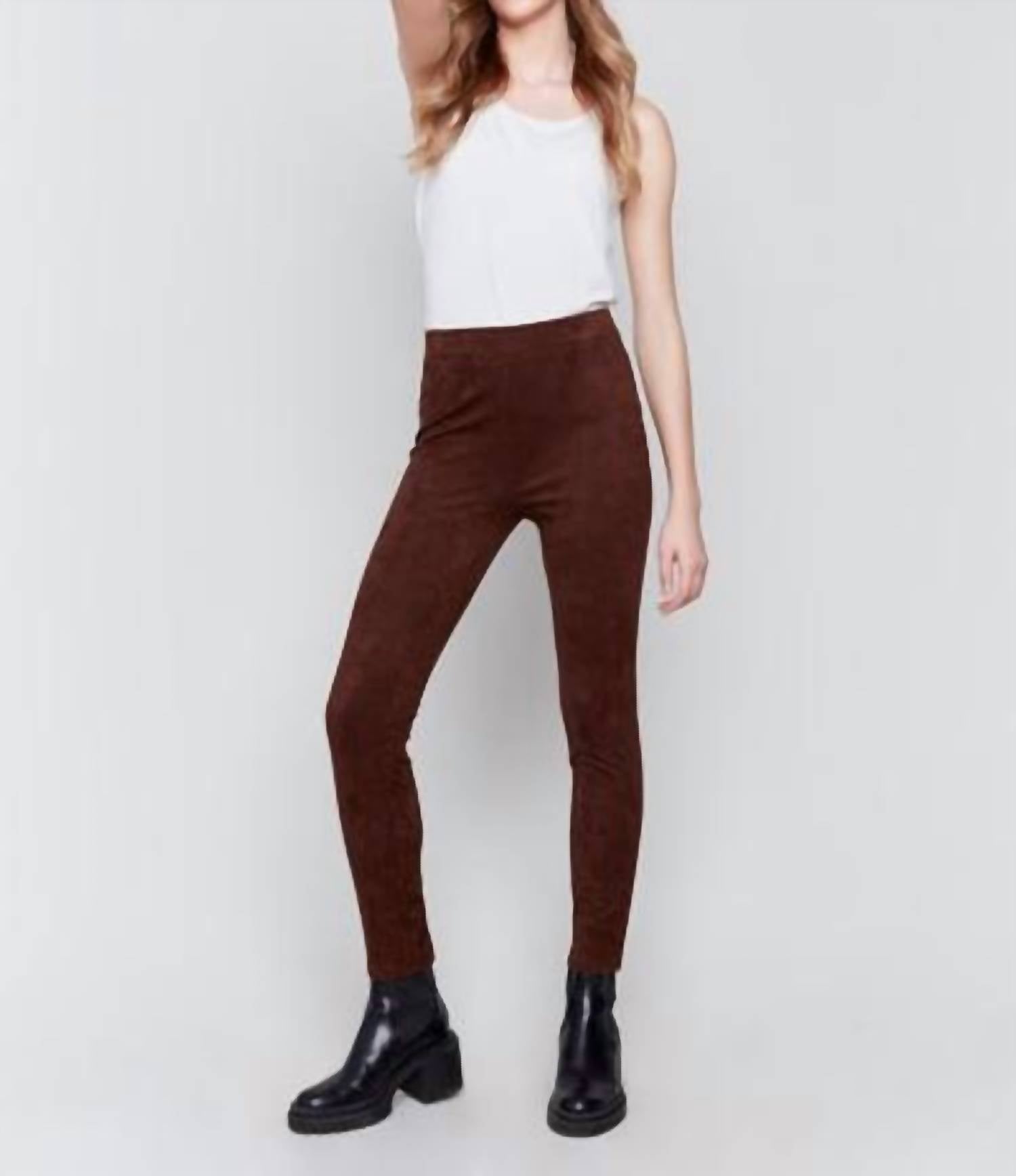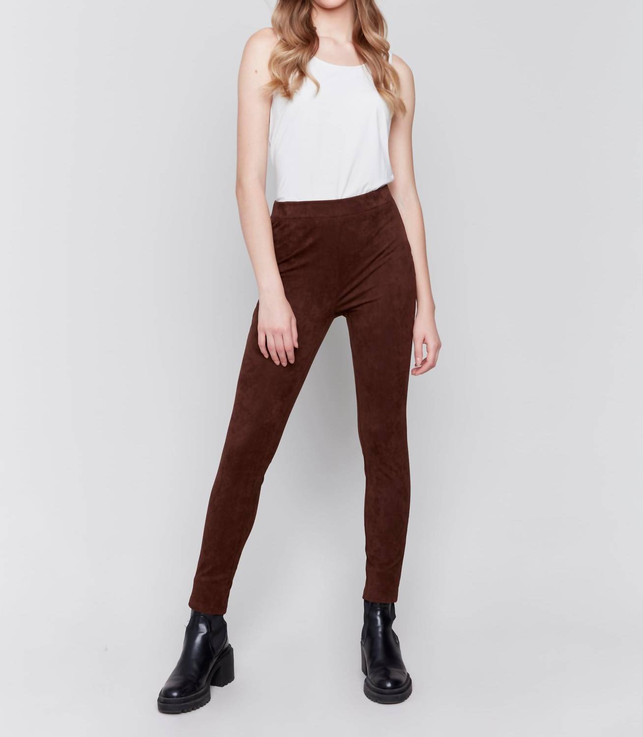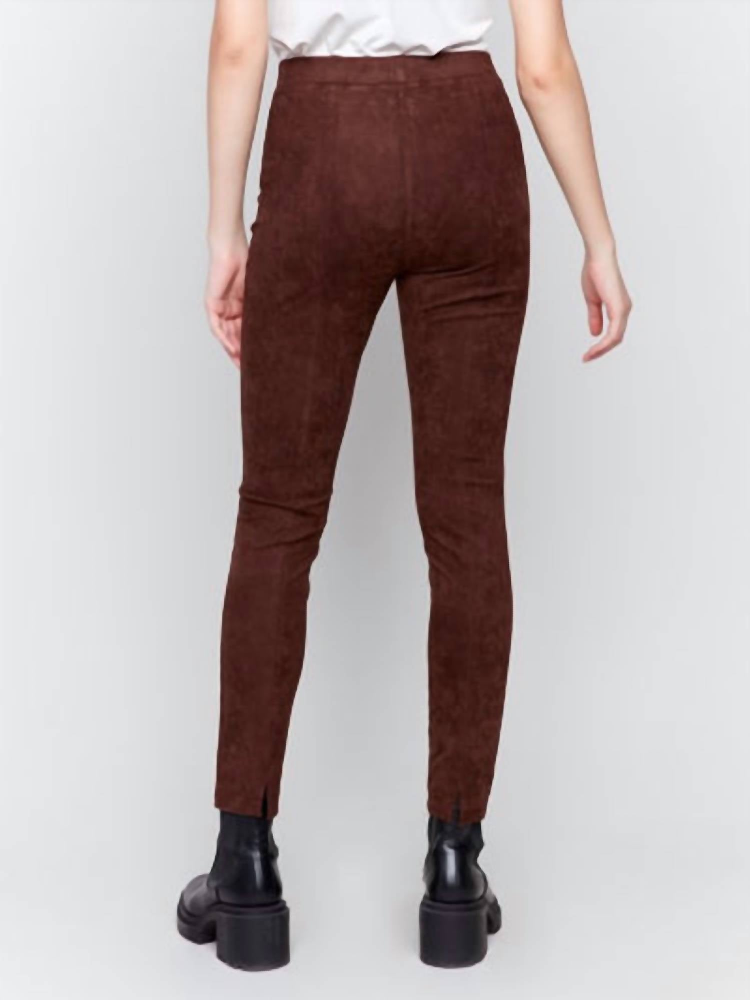 The perfect skinny pant for those stylish boots this season! Enhance your wardrobe with the Pull On Slim Pants by Charlie B in an elegant mocha shade. Crafted from a blend of 90% polyester and 10% spandex, these pants feature a chic skinny leg silhouette with a flattering slim fit. Designed with a convenient pull on closure, they have a 30-inch inseam and a leg opening of 5 3/8 inches. For care, simply machine wash to maintain their pristine condition.