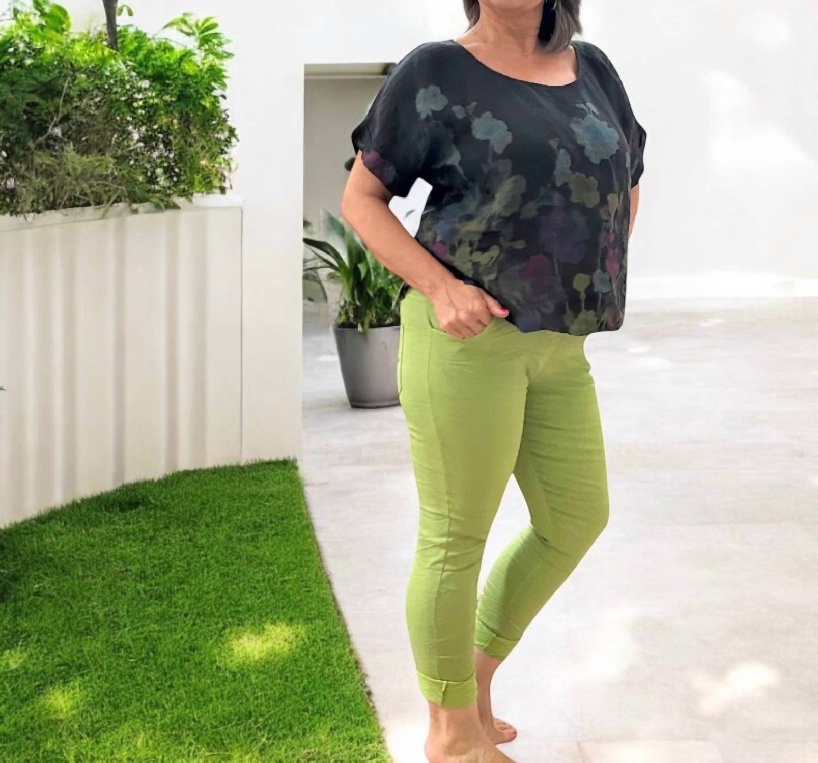 Everyone needs a good pair of skinny pants and this is a style you'll keep reaching for no matter the season. Introducing the Starlight Italian Magic Pants by Made in Italy, a blend of style and comfort in a chic pistachio green. These women's high-rise pants boast a relaxed fit with a skinny leg style, complete with a shimmering star embellishment on one back pocket. Crafted from 75% Viscose, 22% Nylon, and 3% Elastane, they feature a pull-on closure and practical pockets for everyday ease. Made in Italy, these pants are perfect for spring holiday parties and offer an effortless wardrobe addition.