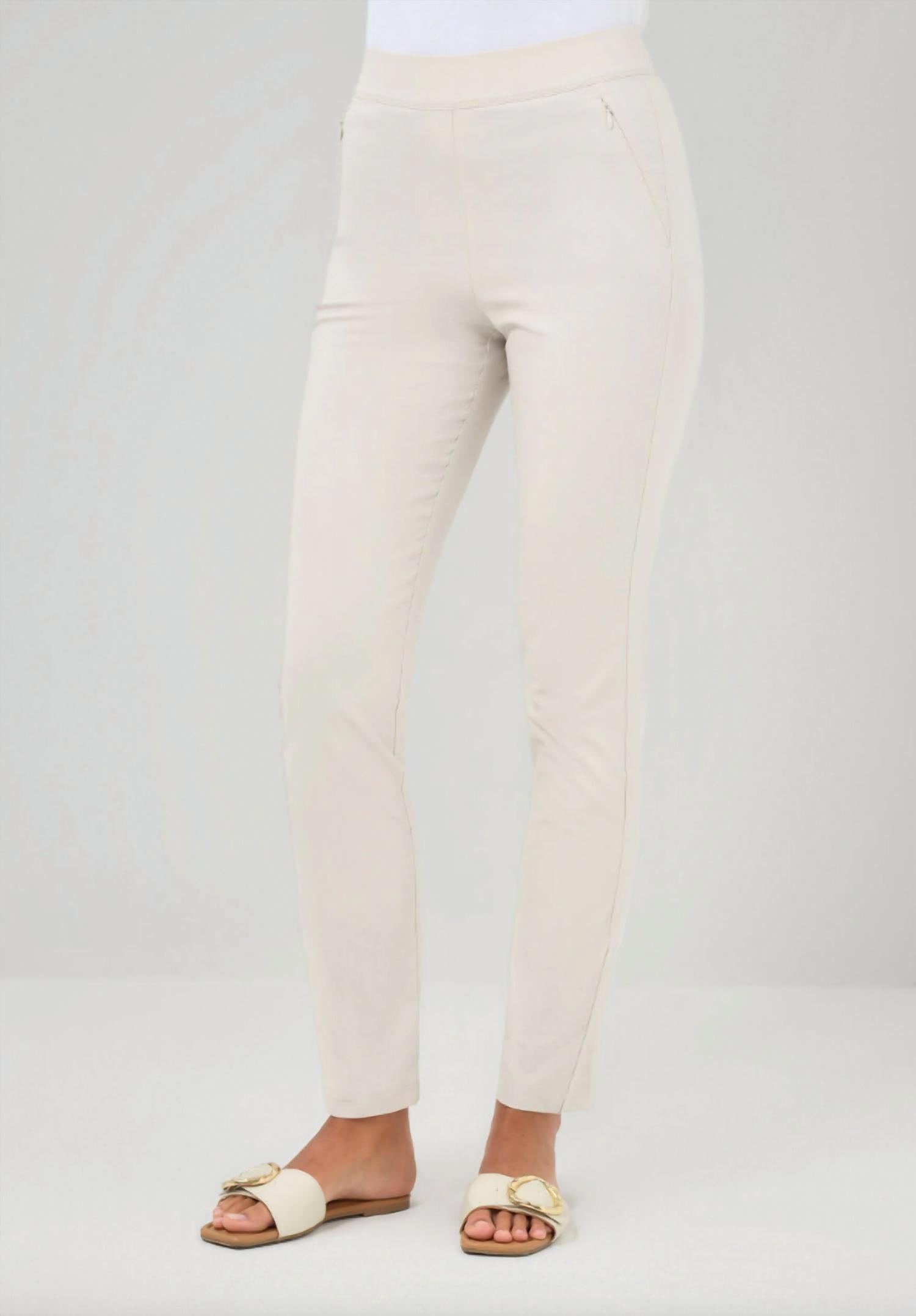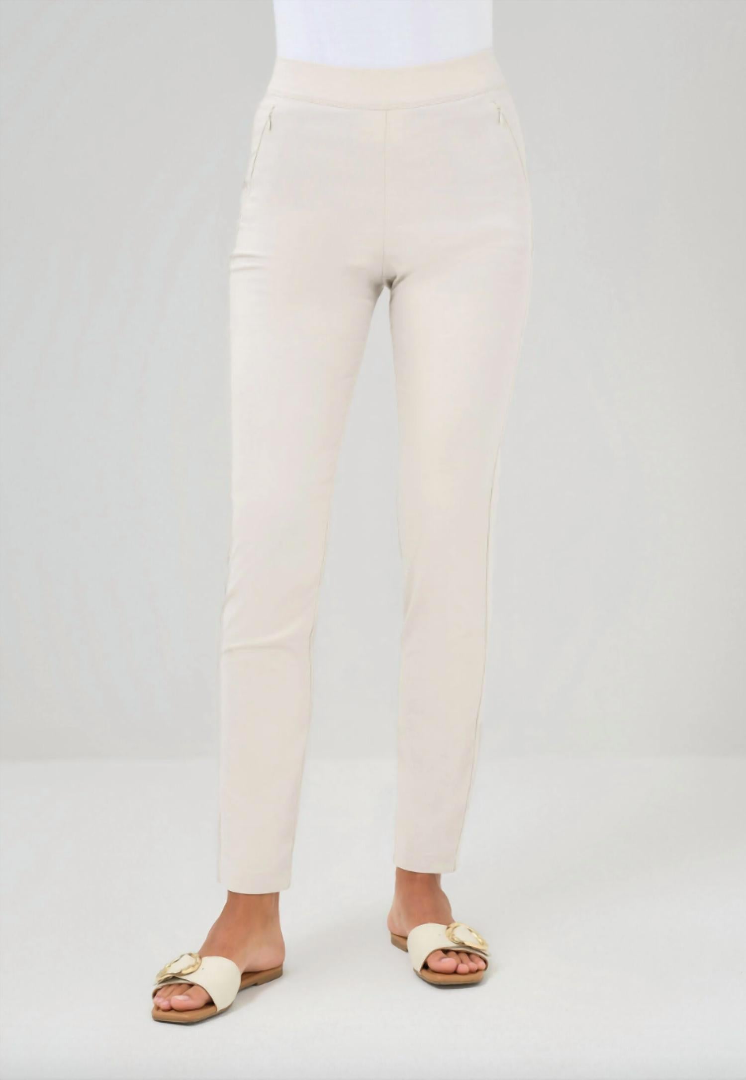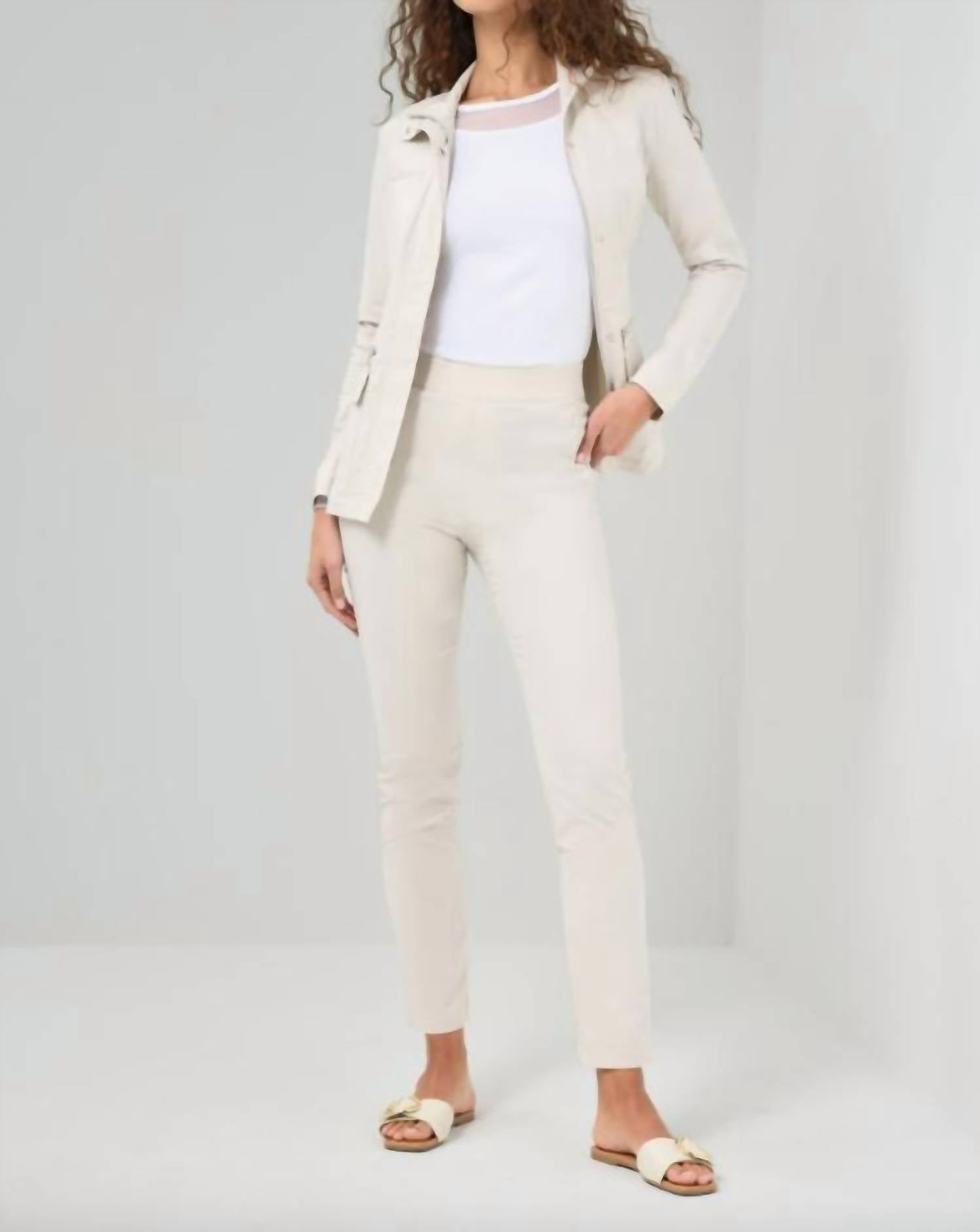 Everyone needs a good pair of skinny pants and this is a style you'll keep reaching for no matter the season. Inspired and developed in partnership with Anatomie loyalist and cinema icon, Jamie Lee Curtis, this pant combines style and comfort to meet the demands of frequent travelers. Featuring the ease of a pull-on design and smartly tailored for a slimming effect. Not only is this pant a favorite of Jamie Lee Curtis herself, it’s also loved by so many customers that it became an instant bestseller upon launch. Crafted in our signature stretch lightweight, quick-dry, wrinkle-resistant fabric, with a wide waistband, flat front and hidden pockets with invisible zippers. Slim fit High rise Straight leg Elasticized waist Two side zip pockets Pull-on style 32” inseam, 10 3/4″ front rise 59% Cotton 37% Polyamide 4% Elastane Machine wash cold, tumble dry low