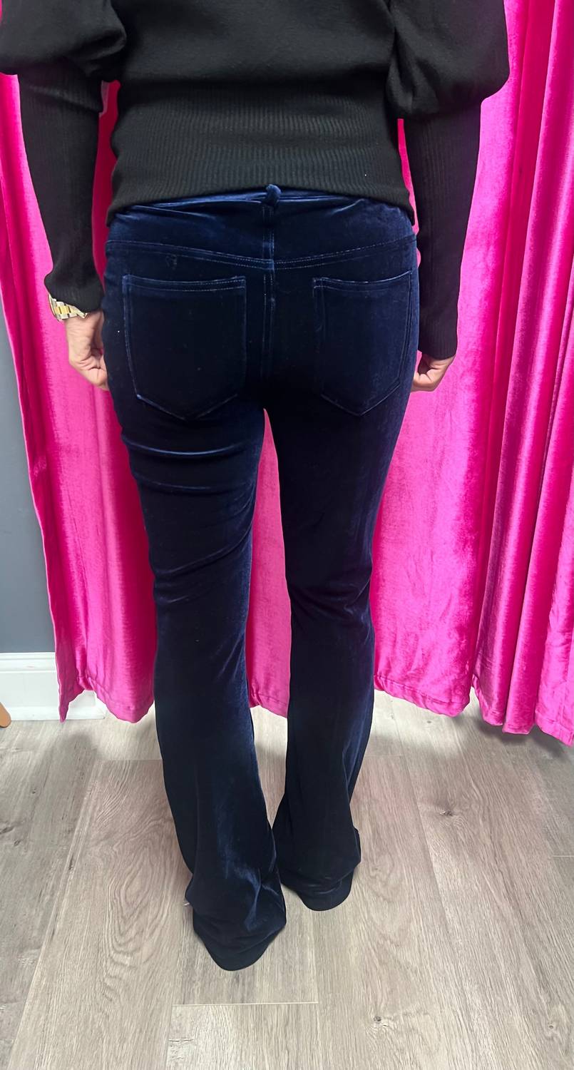 A skinny pant that is both flatering and comfortable. We love this style because it works great with boots, or without! Introducing the Velvet Skinny Flare Pant by BIANCO, crafted to add a touch of luxury to your wardrobe. These navy pants feature a pull-on closure and offer a slim fit with a flattering skinny leg, ideal for creating a sleek silhouette. The solid pattern enhances the elegance of these pants, perfect for versatile styling. Ideal for sophisticated ensembles, these pants offer a chic and timeless look.
