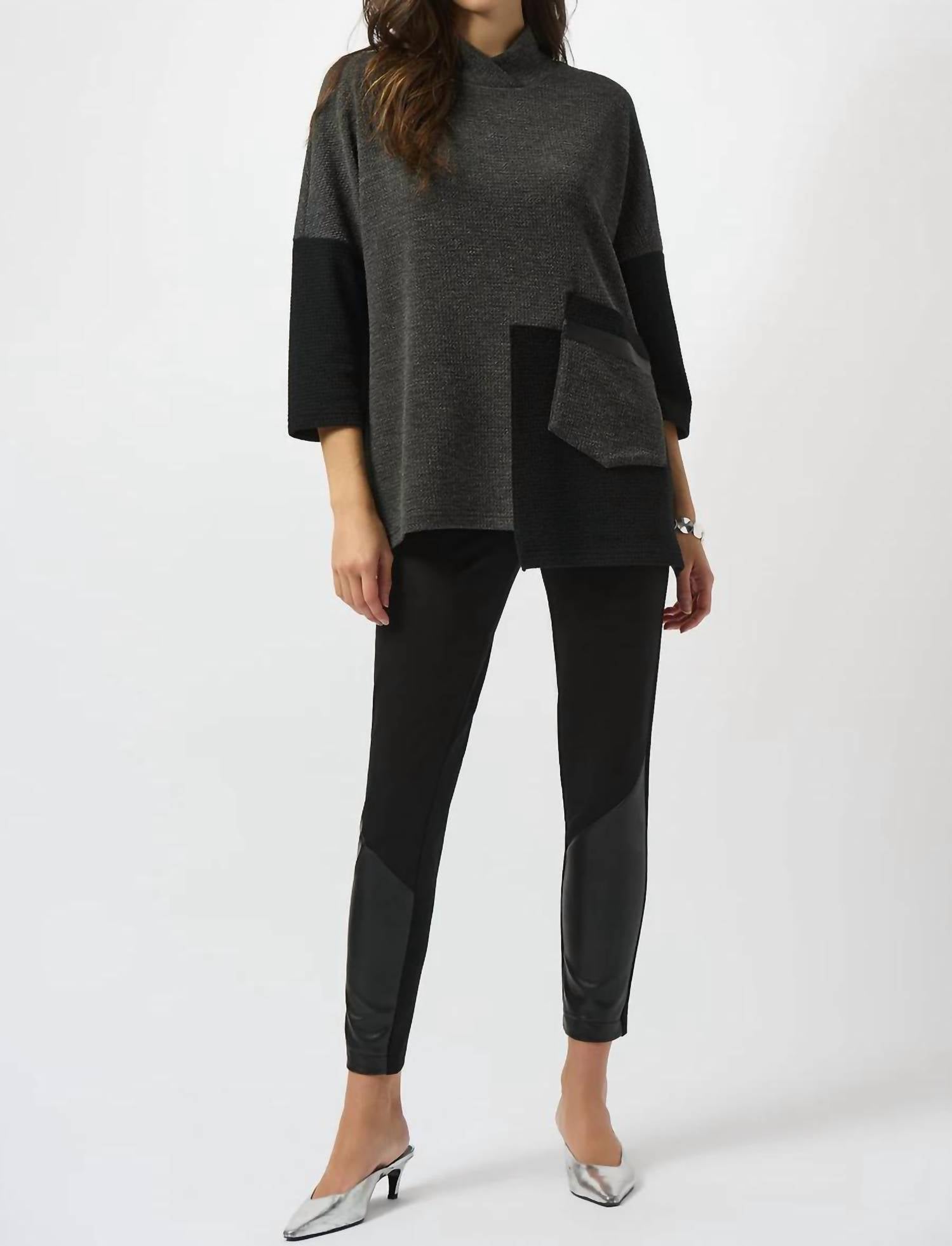 Joseph Ribkoff - Color Block Leatherette Pull-on Legging Style Pants