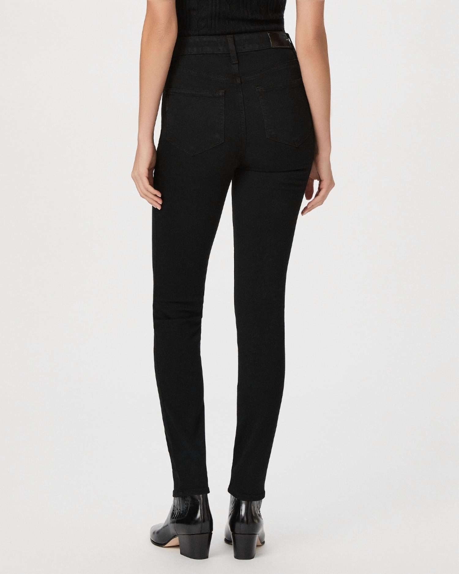 The perfect skinny pant for those stylish boots this season! Discover the Paige Gemma High Rise Cigarette Leg Pants, the ultimate blend of comfort and style in classic black. These high-rise skinny pants feature a stovepipe leg with a flattering ankle length, crafted from the renowned TRANSCEND denim for softness and exceptional stretch. Composition: 54% Rayon, 23% Cotton, 22% Polyester, 1% Spandex. Closure: Zip closure. Care: Machine wash and tumble dry. With a rise of 10 7/8”, an inseam of 29”, and a leg opening of 12 3/4”, these pants offer a flawless fit for any occasion.