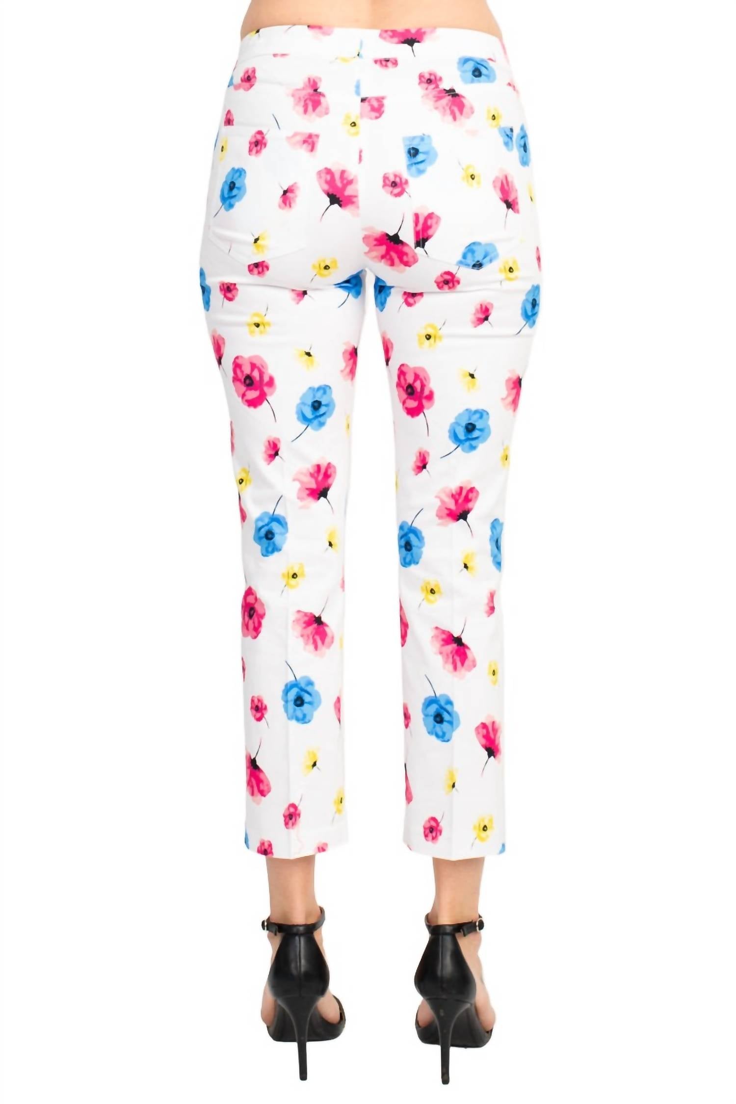 A skinny pant that is both flatering and comfortable. We love this style because it works great with boots, or without! Step into the season with the Peace of Cloth Poppies Flower Pants, a women's slim-fit piece designed for those who love vibrant style. These skinny-leg pants are crafted from a luxurious nylon blend that includes rayon and spandex, ensuring both elegance and comfort. Featuring a floral pattern in the lively "poppies" color palette, these pull-on pants make a statement at any spring or holiday party. Care for them with ease, following the dry clean instructions to maintain their vivid hue and flawless shape.
