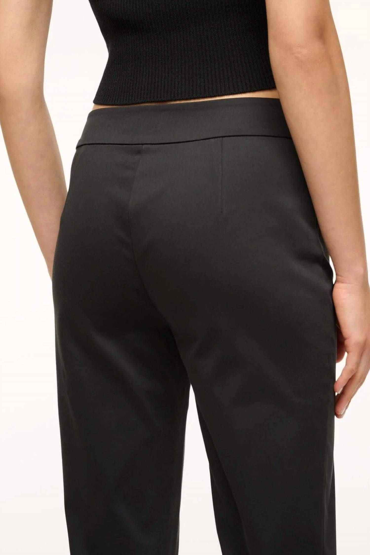 A skinny pant that is both flatering and comfortable. We love this style because it works great with boots, or without! Presenting the Hunter Slim Fit Pant by STAUD, a sleek option perfectly suited for any spring travel occasion. Expertly crafted with a 57% Cotton, 40% Polyester, and 3% Spandex blend, these pants feature a solid black color and a trendy low-rise, cropped leg design with a 27" inseam for a contemporary look. The slim fit and tapered leg offer a flattering silhouette, while the side zipper closure ensures a smooth finish. To maintain this athleisure-inspired piece, dry clean only.