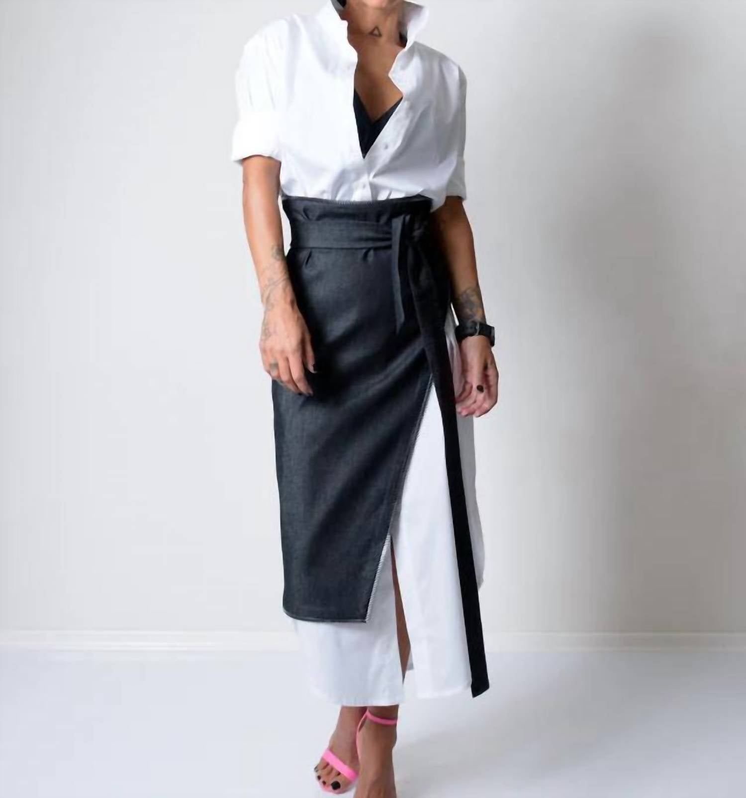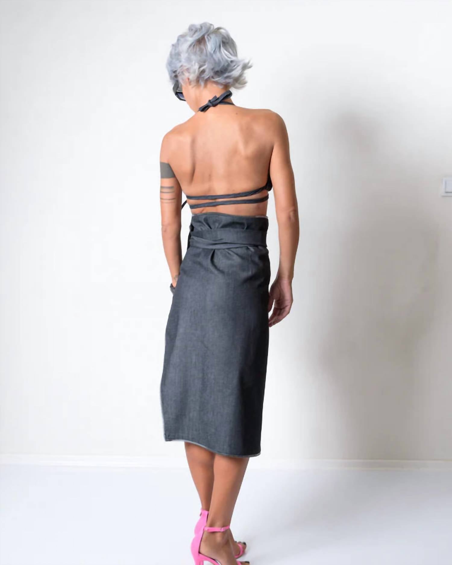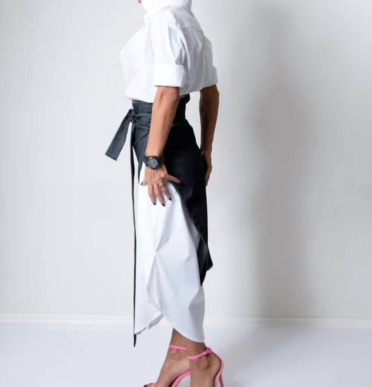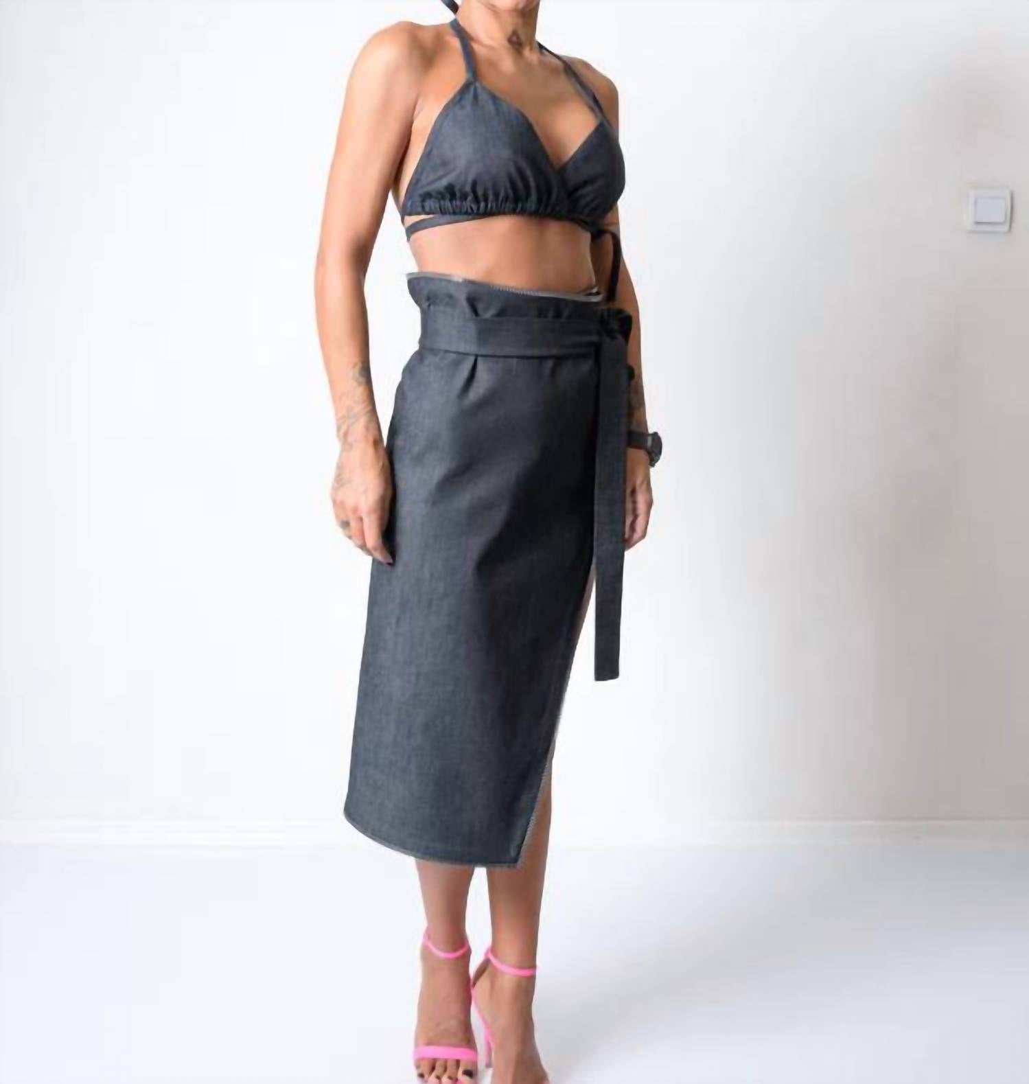 Embrace bold style with the Denim Extravagant Three Piece Set by Locker Room, a standout streetwear ensemble perfect for evening events. This multi-colored set includes a white long shirt with long sleeves, a denim semi skirt complete with a belt, and a denim bra. Crafted from premium materials, the denim parts are 98% cotton and 2% elastane, while the shirt combines 65% cotton and 35% polyester. Designed for comfort without pockets, it features a tie closure and requires hand washing with line drying.