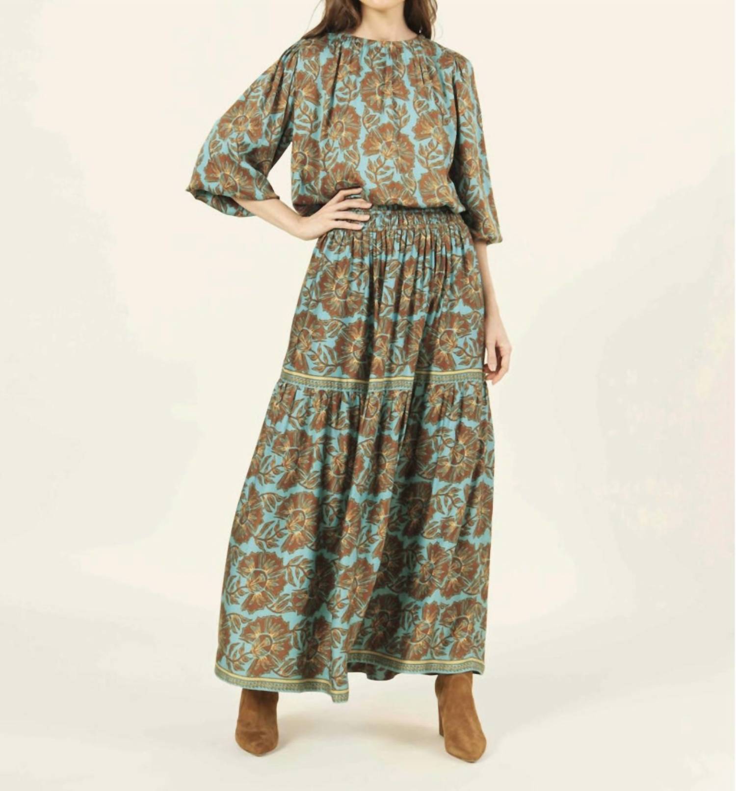Who doesn't love a good maxi skirt? Stunning base in Etta Jadeite that combines ease and elegance. Crafted from 100% Cotton Poplin, offering a soft and breathable experience. Flattering length of 38.5 inches. Designed in India. Features a convenient pull-on closure for effortless wearability. Care for it easily by machine washing separately on delicate and hanging to dry.
