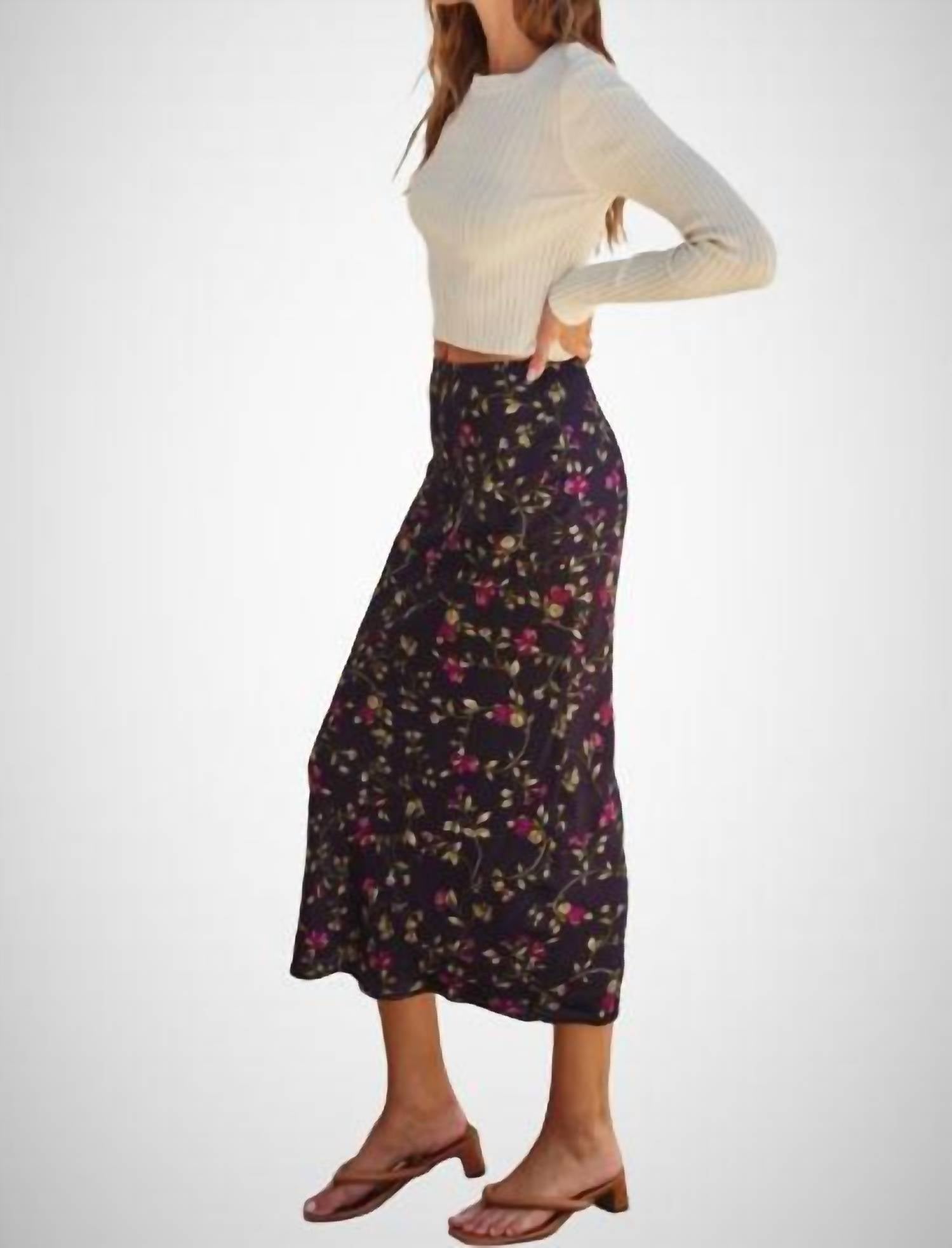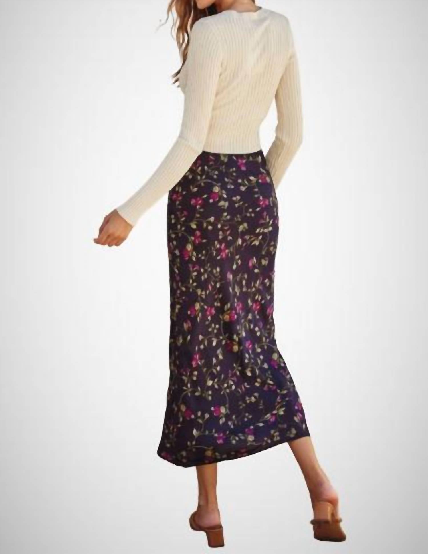 Flowy, comortable and stylish. This maxi skirt is a fan favorite. Elevate your wardrobe with the elegant Chelsea Maxi Skirt by Dress Forum, featuring a timeless floral pattern in midnight plum. This pull-on maxi skirt offers a luxurious comfort with a blend of 60% Viscose and 40% Rayon for the shell, and a 100% Polyester lining, ensuring an effortlessly chic look. With an impressive length of 50 inches, it's perfect for any occasion. Whether you dress it up or keep it casual, this skirt is a versatile addition to your collection.
