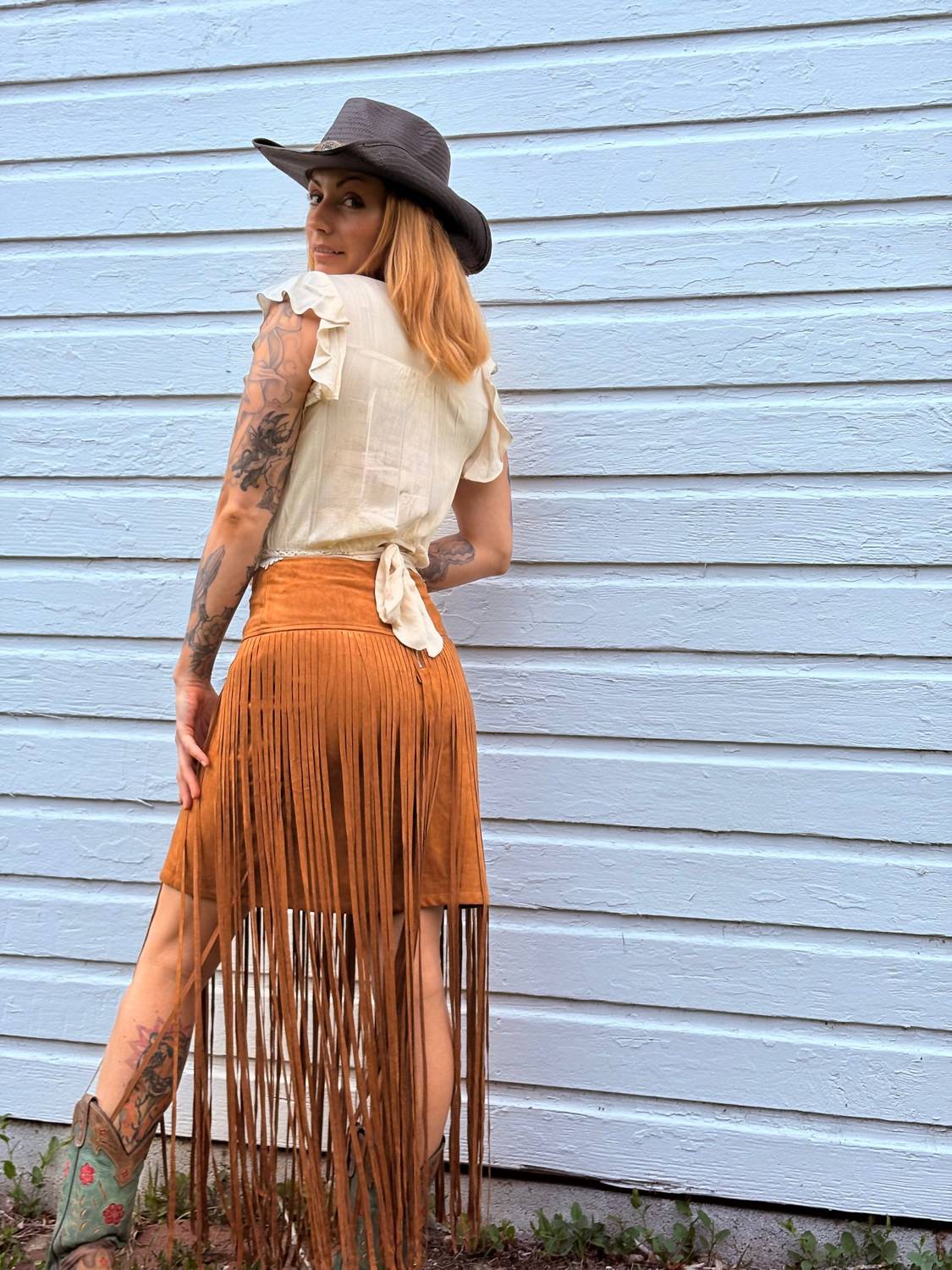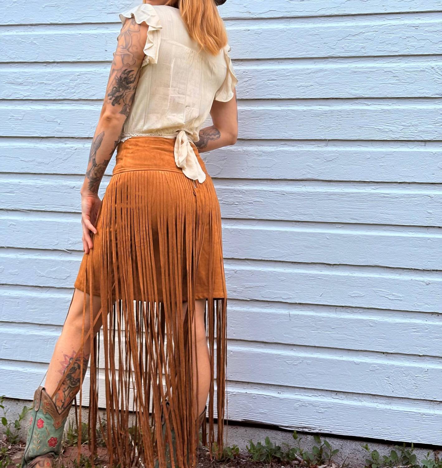 Lucky & Blessed - Western Stretch Suede Long Fringe Skirt