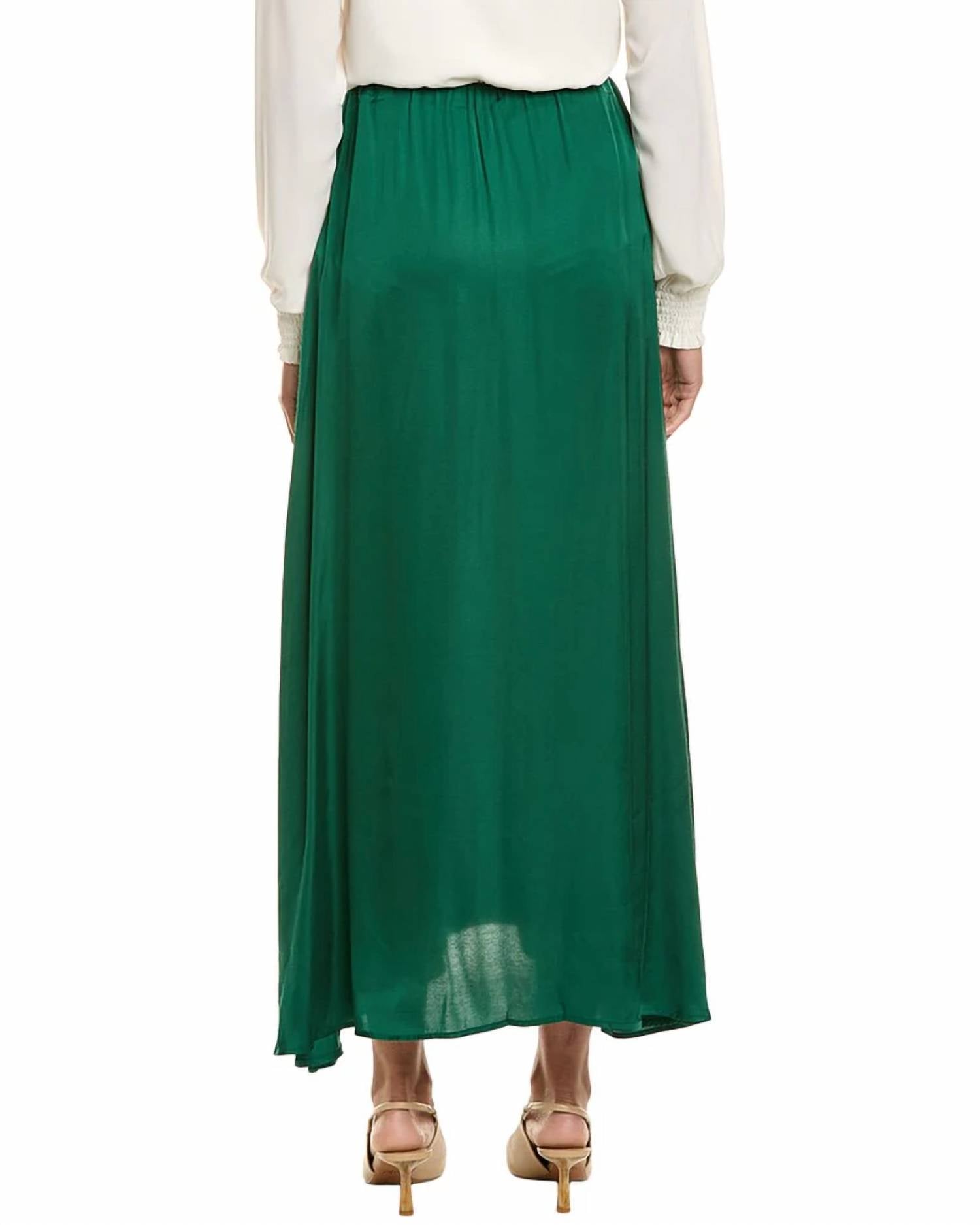 Flowy, comortable and stylish. This maxi skirt is a fan favorite. Introducing the Silky Simple Skirt by DONNI., a luxurious maxi in an elegant vert hue. This silhouette features a practical elastic waist and convenient slip-on styling, measuring approximately 38 inches from waist to hem. Crafted in the USA with a sumptuous blend of 56% viscose and 44% rayon, it offers both comfort and sophistication. Care instructions include hand washing and laying flat to dry for optimal maintenance. Model is 5'10" and is wearing a size small, with measurements subject to slight variation by size.