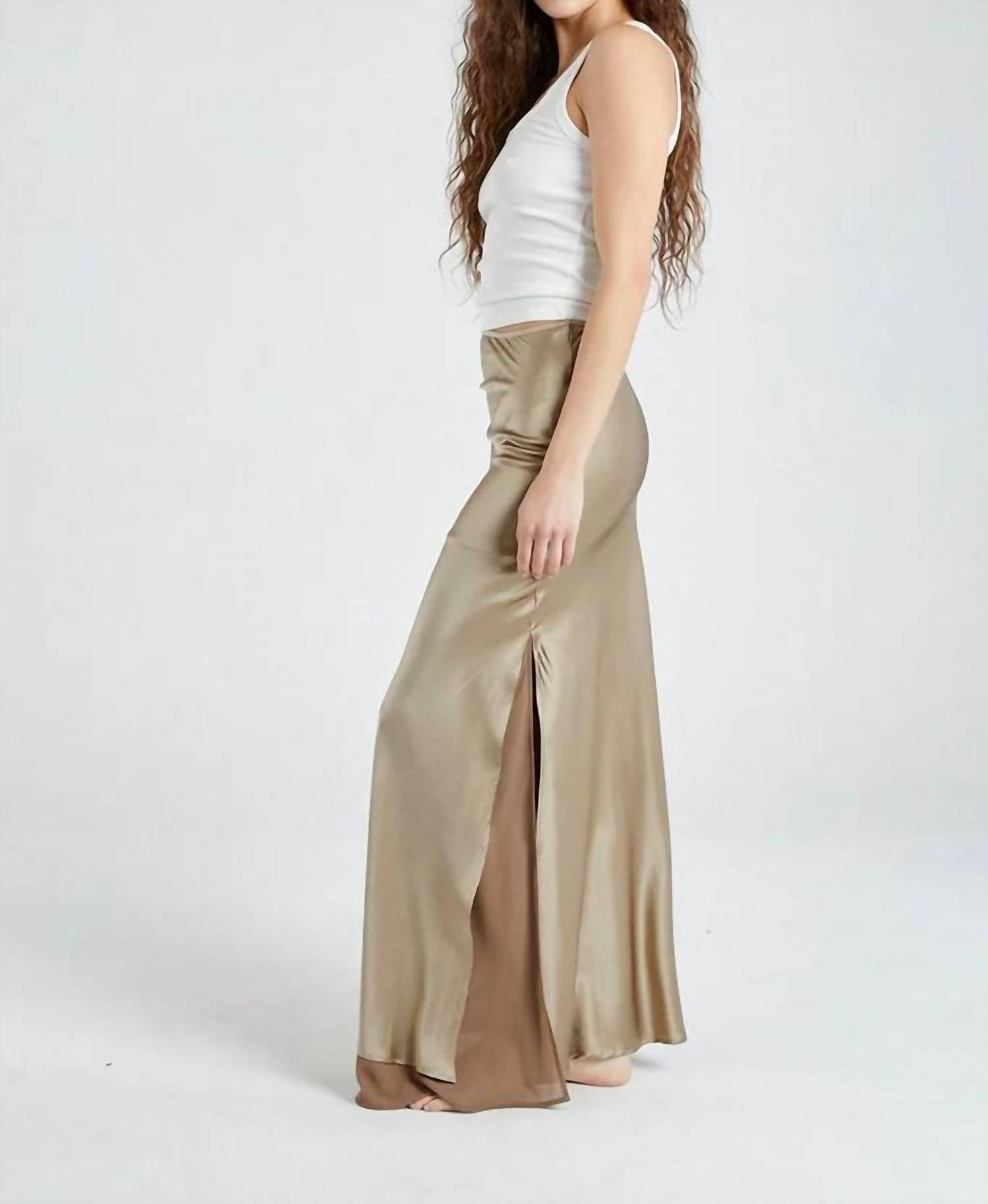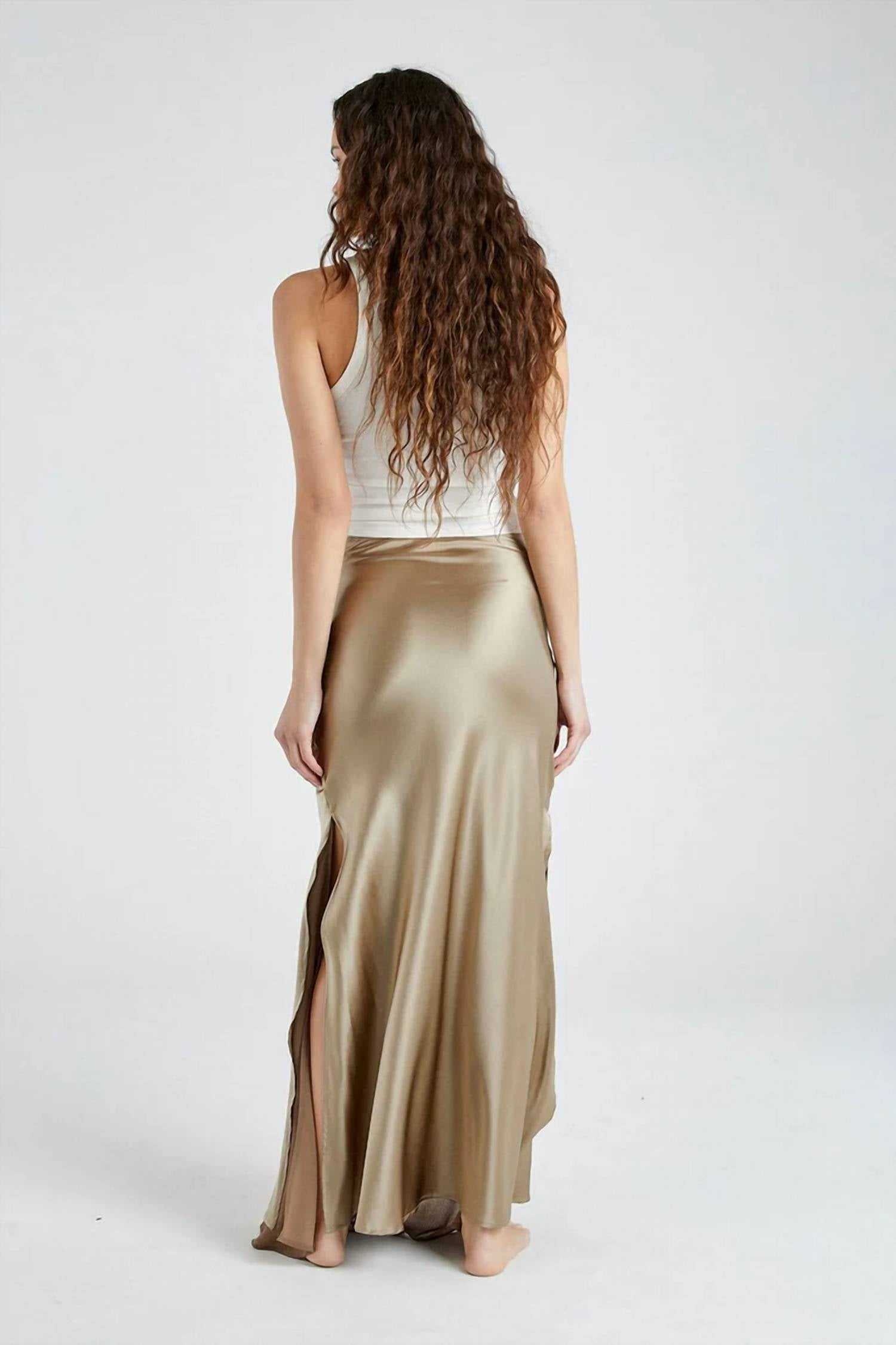 Featuring 2 slits on each side. Maxi skirt. Fabric: 100% Lustrous Silk. Dry clean. Designed in Malibu.