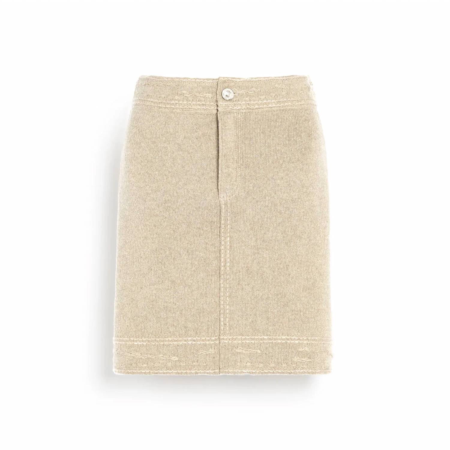 Show just the right amount of leg in this fit flattering mini. Experience the exquisite craftsmanship of the Barrie Patchwork Denim Skirt in a vibrant Urchin/Sand color. This mini skirt showcases a unique trompe-l'œil patchwork design, skillfully joining the front and back with precision stitching and a distinct metal Barrie button. Crafted from a luxurious 36% Cotton and 64% Cashmere blend in Scotland, this piece is perfect for adding a touch of sophistication to your fall wardrobe. With functional pockets and a button closure, this skirt is best cared for by hand washing.