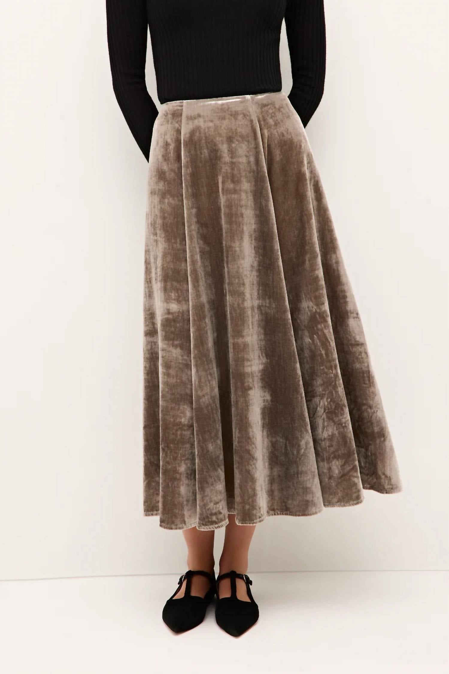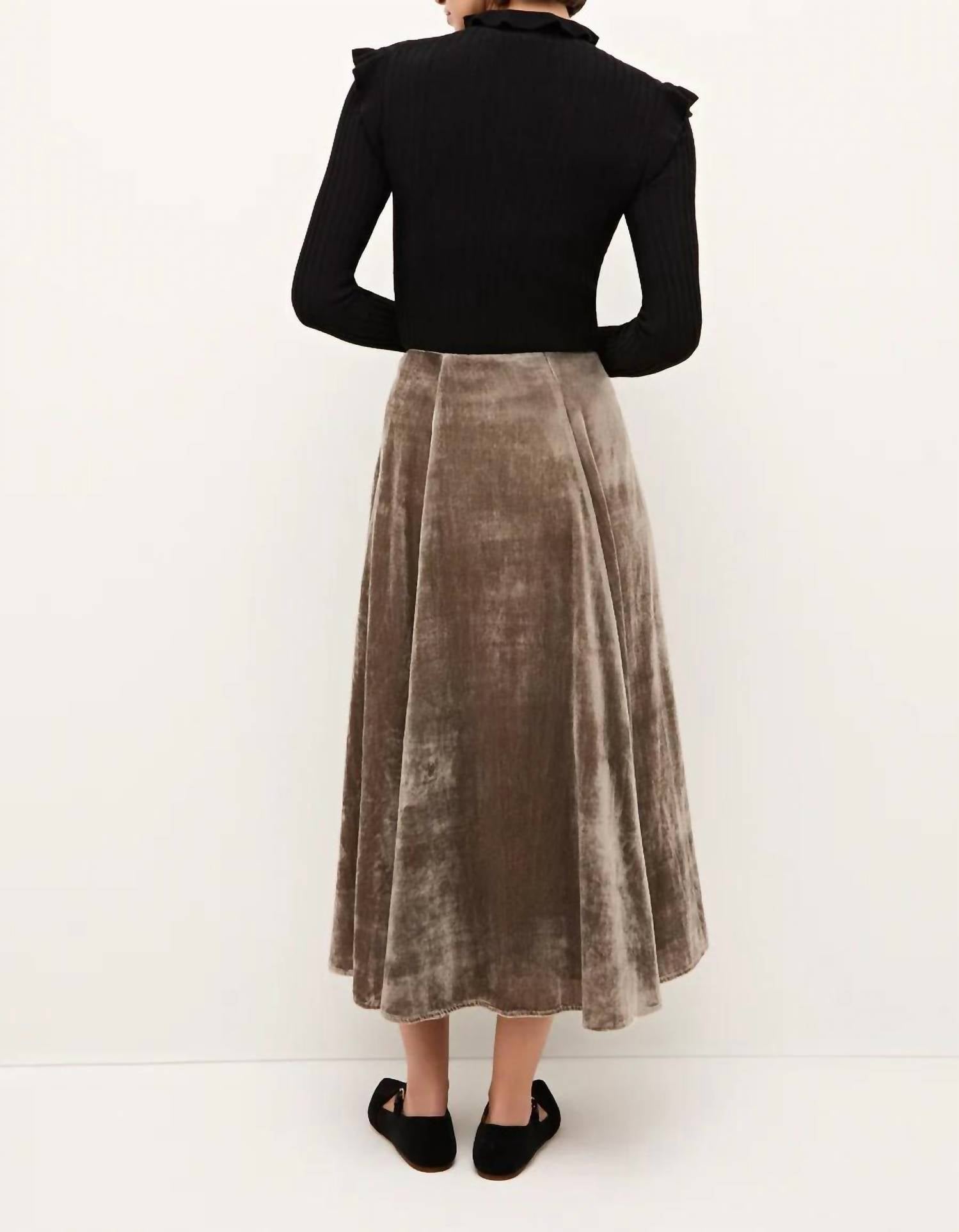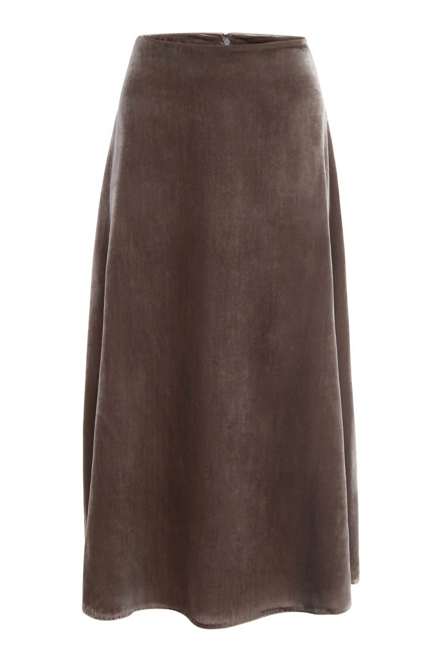 Show off just the right amount of skin in this beautifuly designed midi length skirt. Embrace elegance with the Monroe Skirt by Marie Oliver, a chic addition to your wardrobe in a sophisticated Pewter shade. This women's midi skirt is crafted from 100% poly velvet, delivering a luxurious yet comfortable feel. With a button closure for easy wear, it stands out with its animal pattern design. Care: Hand wash with gentle detergent and hang dry or dry clean.