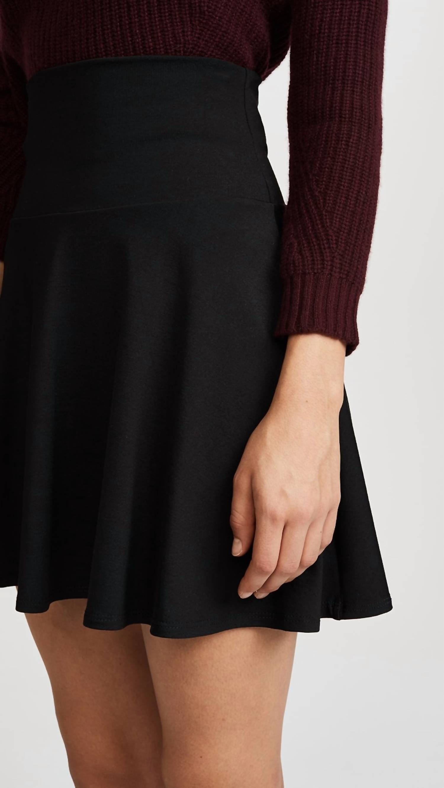 Tuck in your favorite tee for a more laid-back vibe. Elevate your wardrobe with the Susana Monaco High Waist Flare Skirt, a timeless piece in black. This women's mini skirt is crafted in the USA from a nylon blend of 86% nylon and 14% lycra spandex, ensuring a flattering fit with its high-waisted and flared silhouette. It features a convenient pull-on style and an unlined finish for effortless comfort. Care instructions: Machine wash cold.