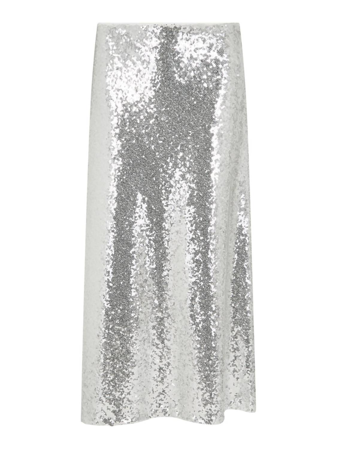 Tuck your favorite tee into this midi length skirt for an effortlessly cool look. Introducing the Women's Miley Sequin Skirt by APRICOT, a dazzling choice for your next evening event. This solid silver midi skirt effortlessly captures the maximalist trend, ideal for making a statement. Designed without pockets, it offers a smooth, streamlined silhouette with a convenient pull-on closure.