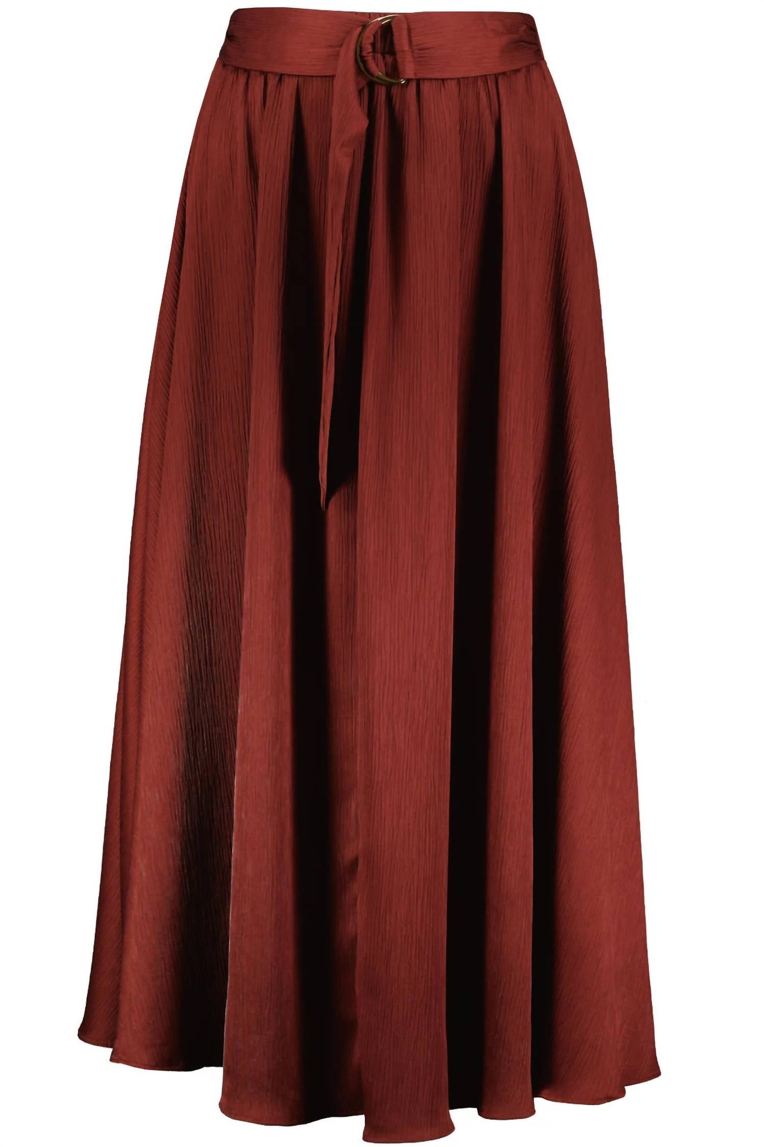 The midi length skirt is here to stay and we especially love this style. Introducing the Micro Plisse Skirt by bishop + young, a sophisticated piece in a rich Sienna hue that exudes quiet luxury. This midi skirt features delicate pleats and a classic A-line shape, perfect for evening events or a chic day-to-night transition. Country of Origin: Not specified. Closure: Zip closure. Care: Dry clean only.