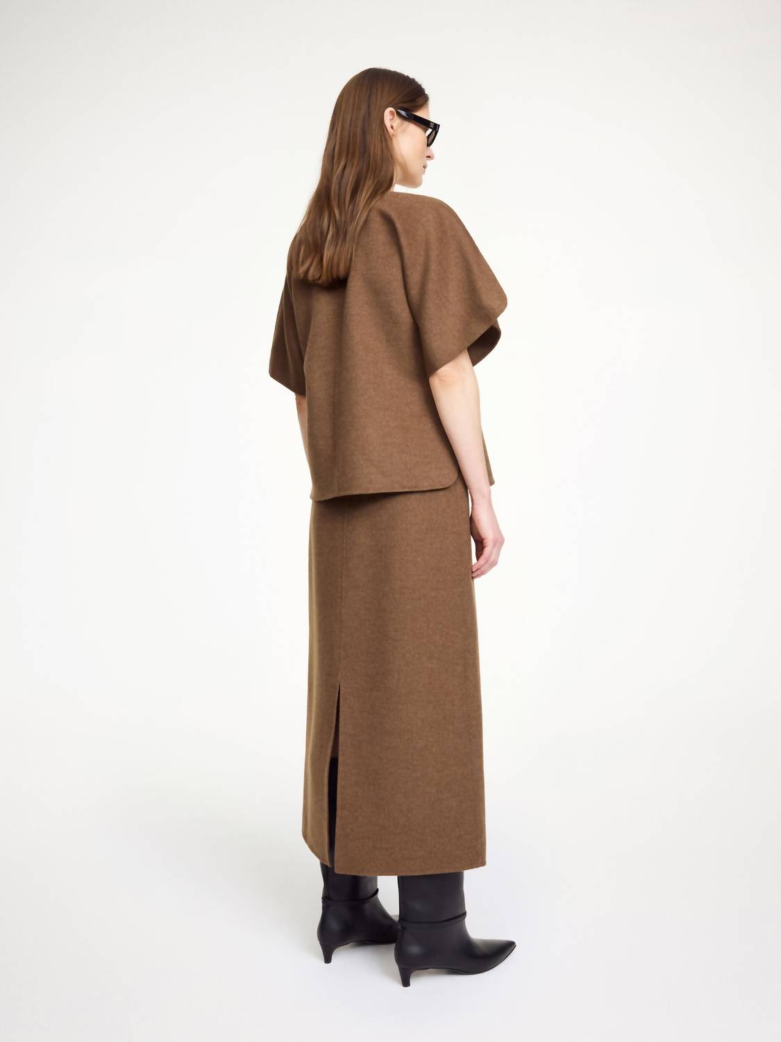 Tuck your favorite tee into this midi length skirt for an effortlessly cool look. The Palomie Midi Skirt by By Malene Birger is expertly crafted from 100% responsibly sourced wool, offering a luxurious touch to any wardrobe. This dark brown melange skirt boasts a body-skimming A-line silhouette with a sophisticated midi length, ideal for minimalist fall trends. Made for evening events, it pairs effortlessly with a blazer for an easy yet polished look. Origin: Imported.
