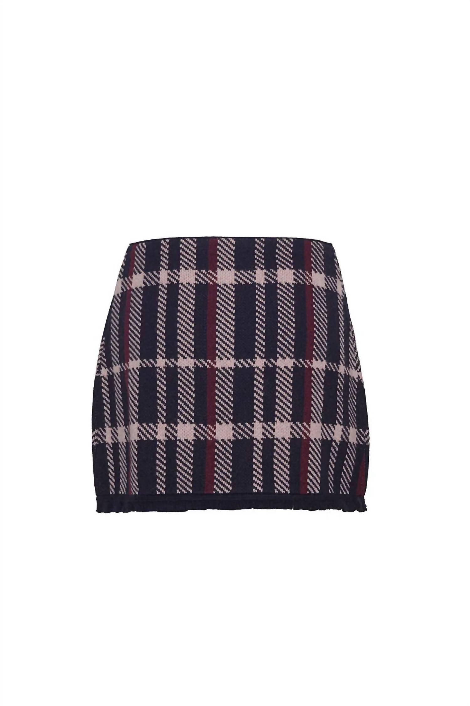 Tuck in your favorite tee for a more laid-back vibe. Introducing the Jodi Mini Wrapped Skirt by Cara Cara, a stylish piece perfect for any holiday party with its chic navy plaid jacquard pattern and fringe trims. Crafted from 100% Extra Fine Merino Wool, this functional wrap mini skirt features a novelty gold decorative pin at the waist and inner snap details. Made in China, it's a luxurious addition to your spring wardrobe. Care for this special garment by dry cleaning or hand washing cold to preserve its shape.
