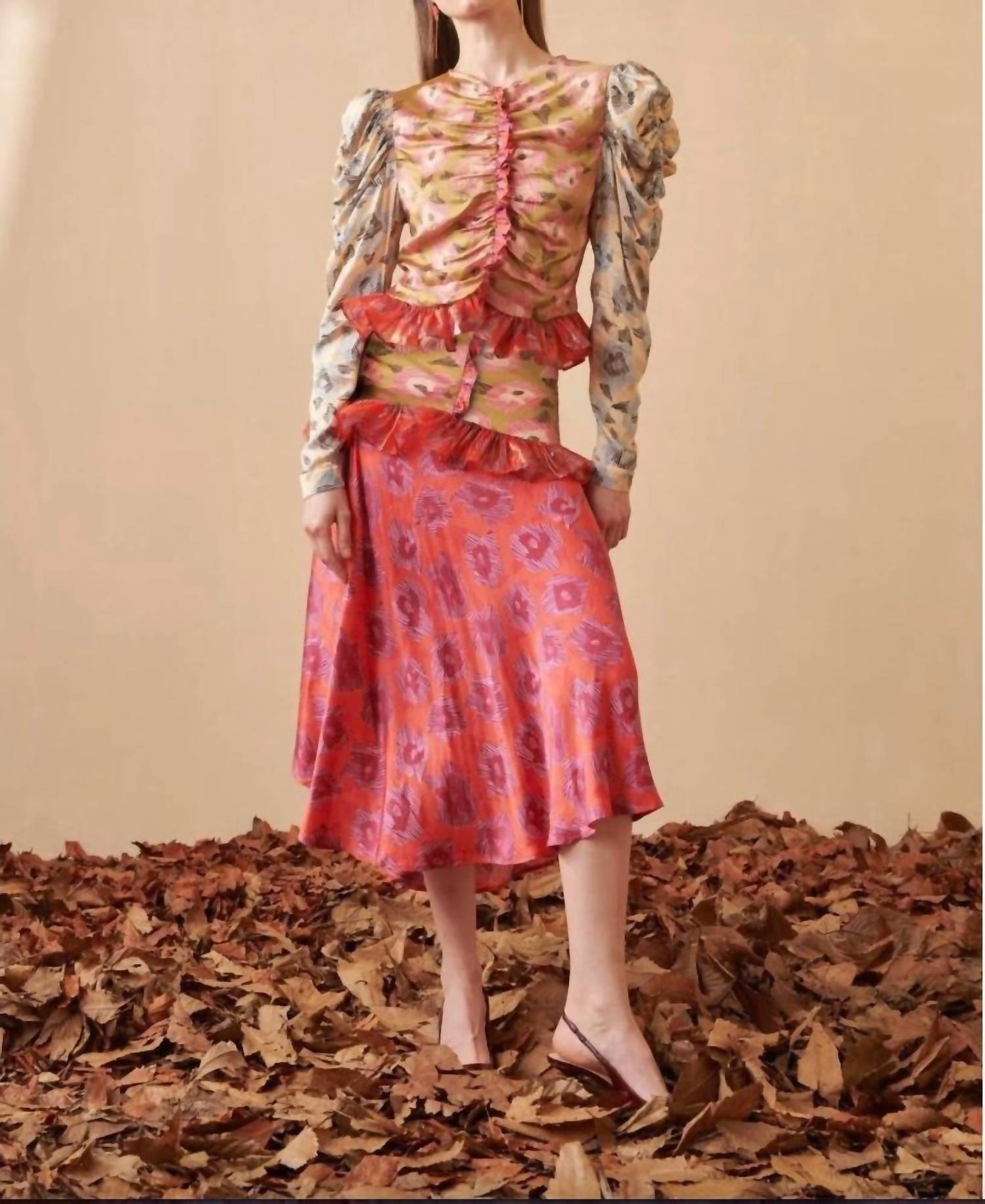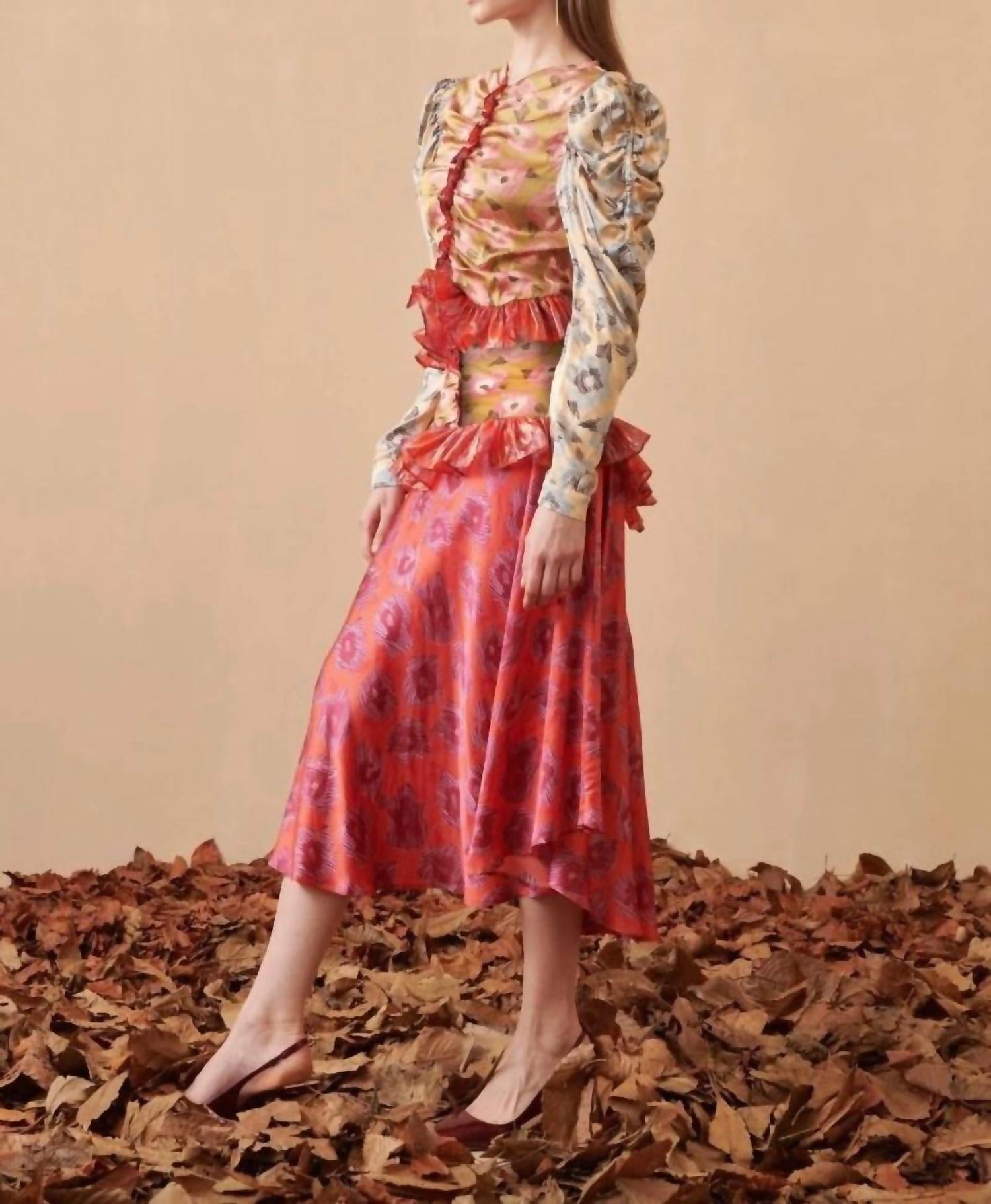 The midi length skirt is here to stay and we especially love this style. The Thrill Midi Skirt by CELiA B is a flowing piece crafted in luxurious Lyocell with a bold floral print in vibrant shades of red. Its flared cut offers graceful movement, perfect for both day and evening occasions. The skirt features a pull-on closure, combining comfort and style effortlessly. Composition: Tencel™ 48%, Fabric 29%, Polyester 23%. Care: Hand wash and line dry. Model is wearing a size XS (179 cm / 5' 10½'' height, 81 cm / 32" bust, 59.5 cm / 23½'' waist, 87 cm / 34½'' hips).
