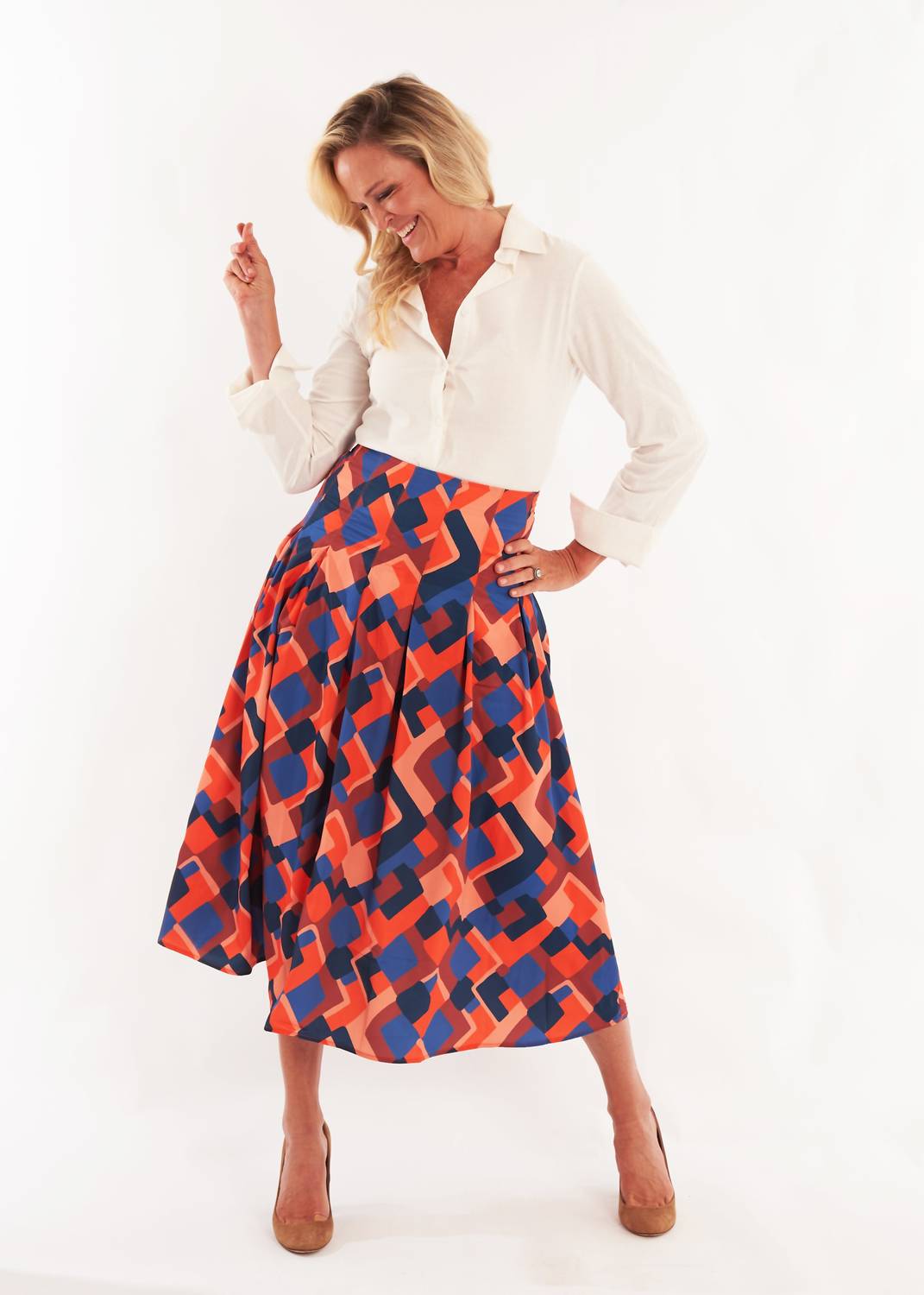 The midi length skirt is here to stay and we especially love this style. Introducing the Women's Atoka Skirt by CK Bradley, a vibrant piece in an eye-catching orange multi pattern perfect for your spring wardrobe. This midi skirt features a convenient zip closure and stylish feminine silhouette, ideal for vacation wear. With a maximalist design, it incorporates a playful pattern that will make a statement on any occasion. This versatile skirt comes equipped with pockets for added functionality.