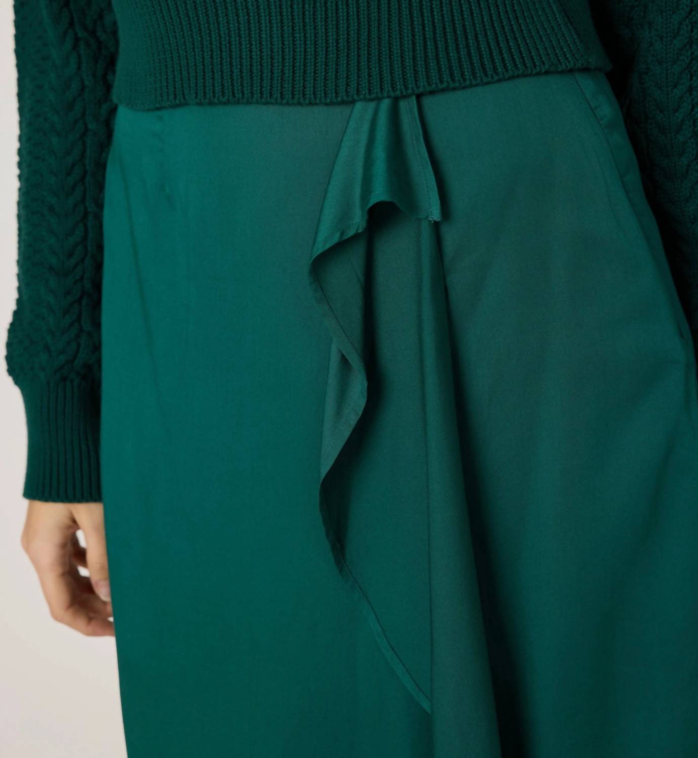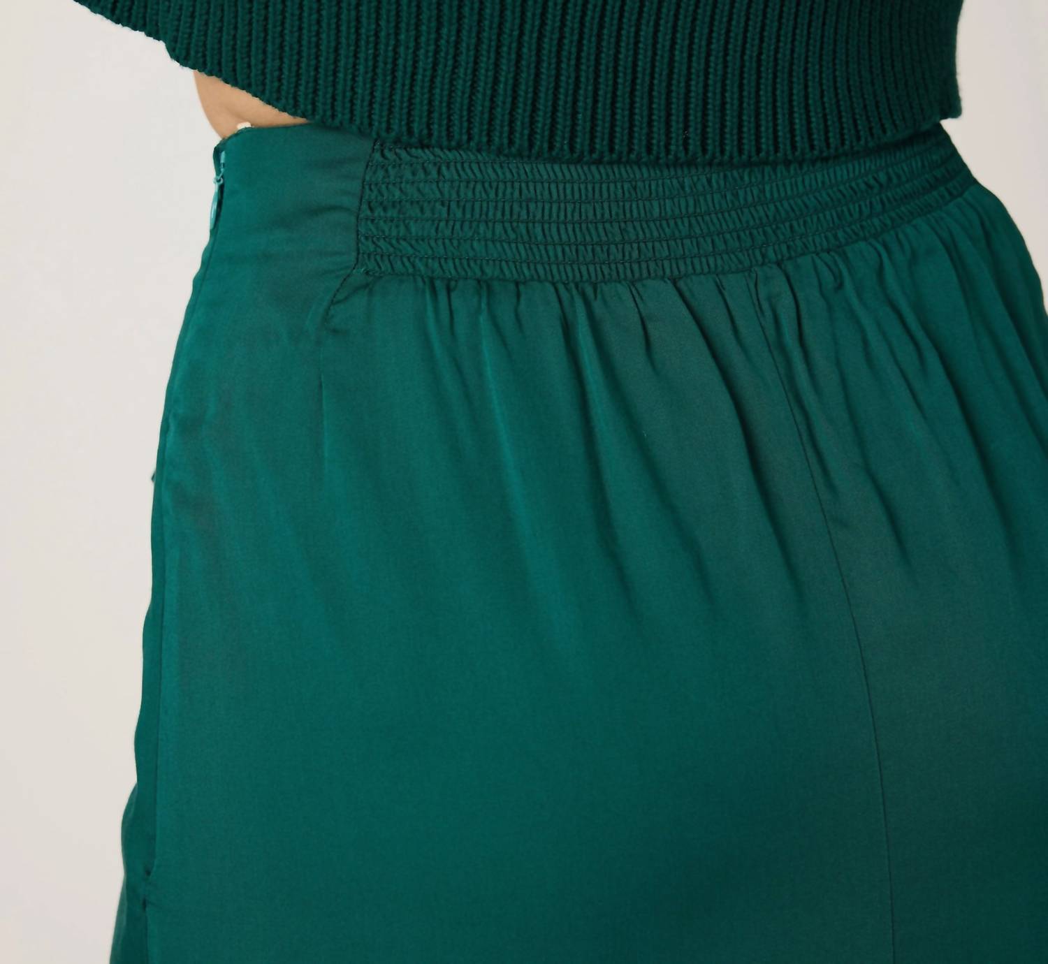 Tuck your favorite tee into this midi length skirt for an effortlessly cool look. Discover the Regina Midi Skirt by Cleobella, a stylish choice for any Spring occasion, crafted in a beautiful forest green hue. Designed with a flattering midi length, this fit & flare skirt boasts an effortless silhouette crafted entirely from 100% viscose and ethically handmade in India. It features a versatile tie closure that can be styled in various ways, complemented by a smocked back waistband for added comfort. Offering both elegance and charm, this skirt is lined for a smooth fit and features pockets for practicality. Care instructions recommend hand washing cold, laying flat to dry, or opting for dry clean. Ana is 5'9" and wears a size S, making this skirt a minimalist favorite perfect for your wardrobe.