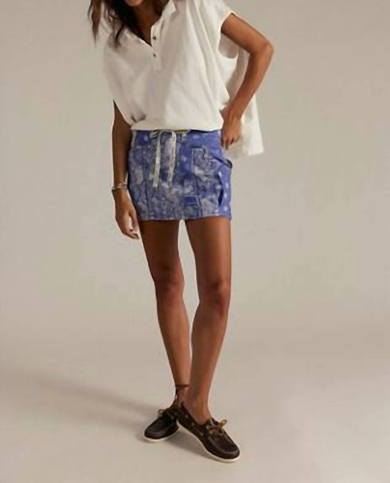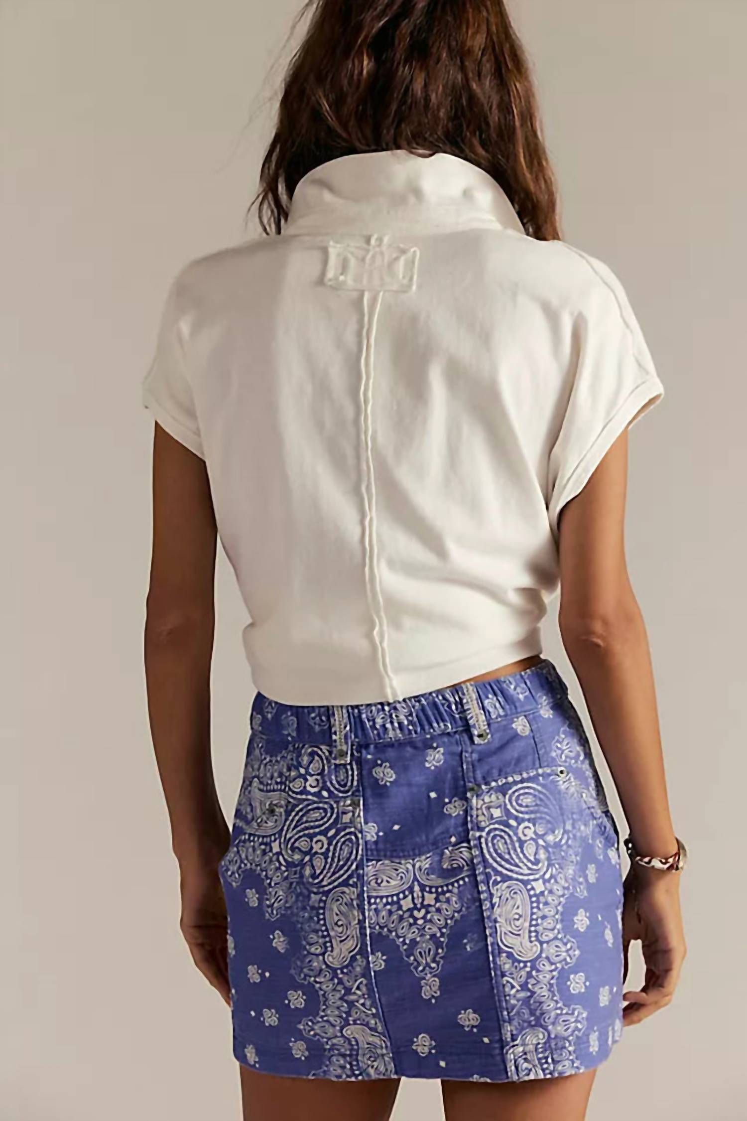 Tuck in your favorite tee for a more laid-back vibe. Embrace vibrant style with Free People's River Canyon Printed Mini Skirt, designed in a striking Midnight Combo paisley pattern. This relaxed mid-rise mini skirt features a pull-on closure and oversized pouch pockets, offering a playful yet practical appeal. Crafted from 100% cotton and imported, its machine washable fabric makes it easy to care for. The skirt measures 30.5 inches at the waist and has a length of 14.75 inches; simply lay flat to dry to maintain its fresh look for any summer vacation.