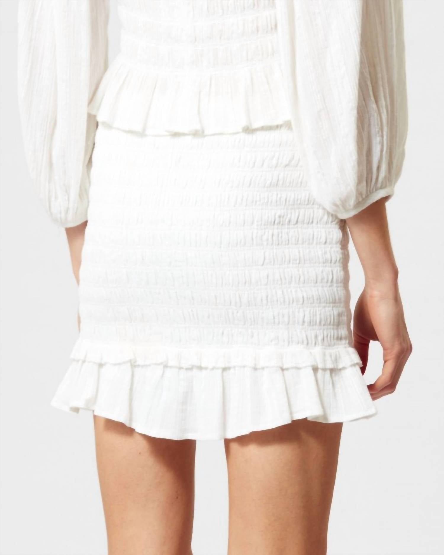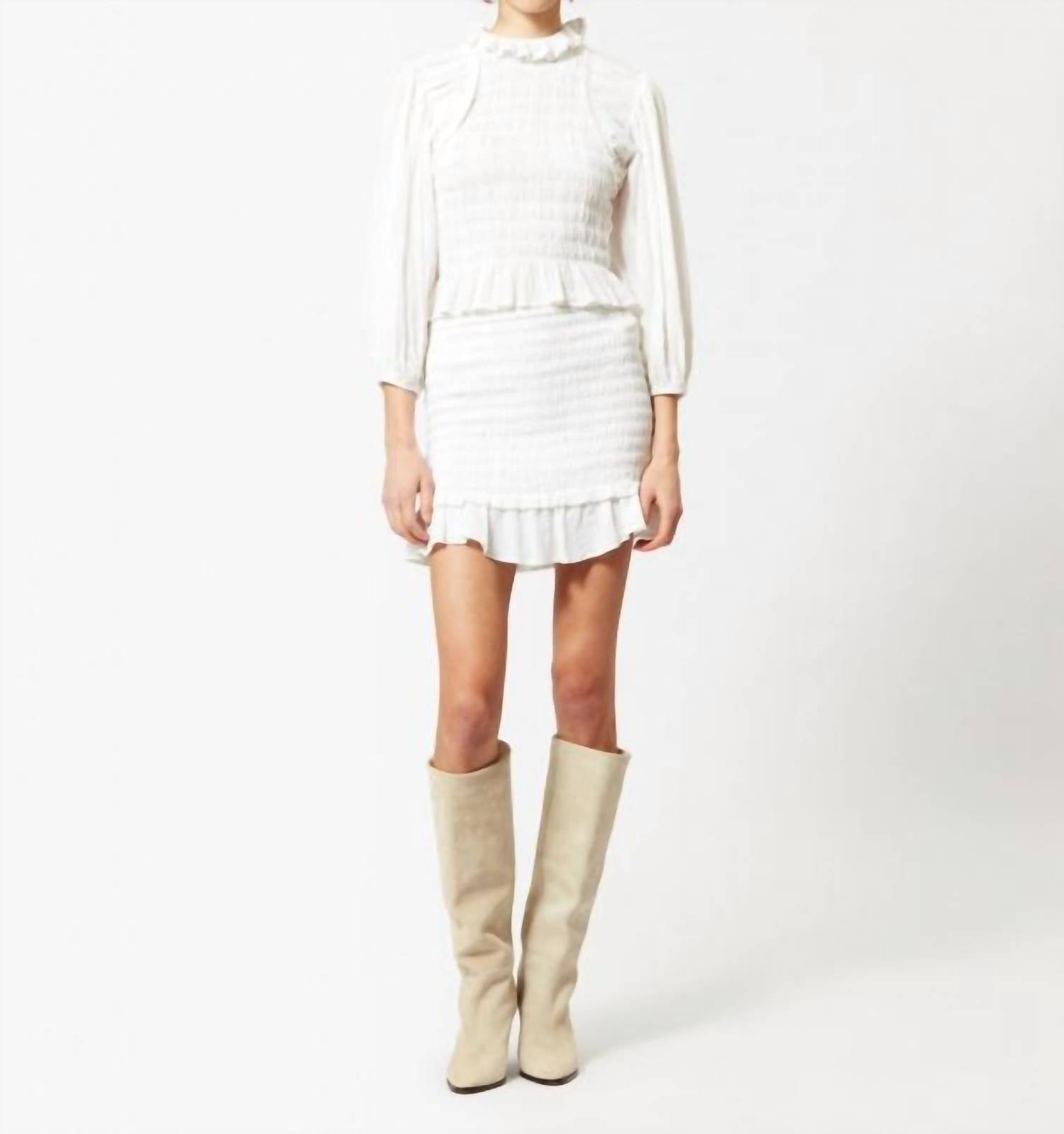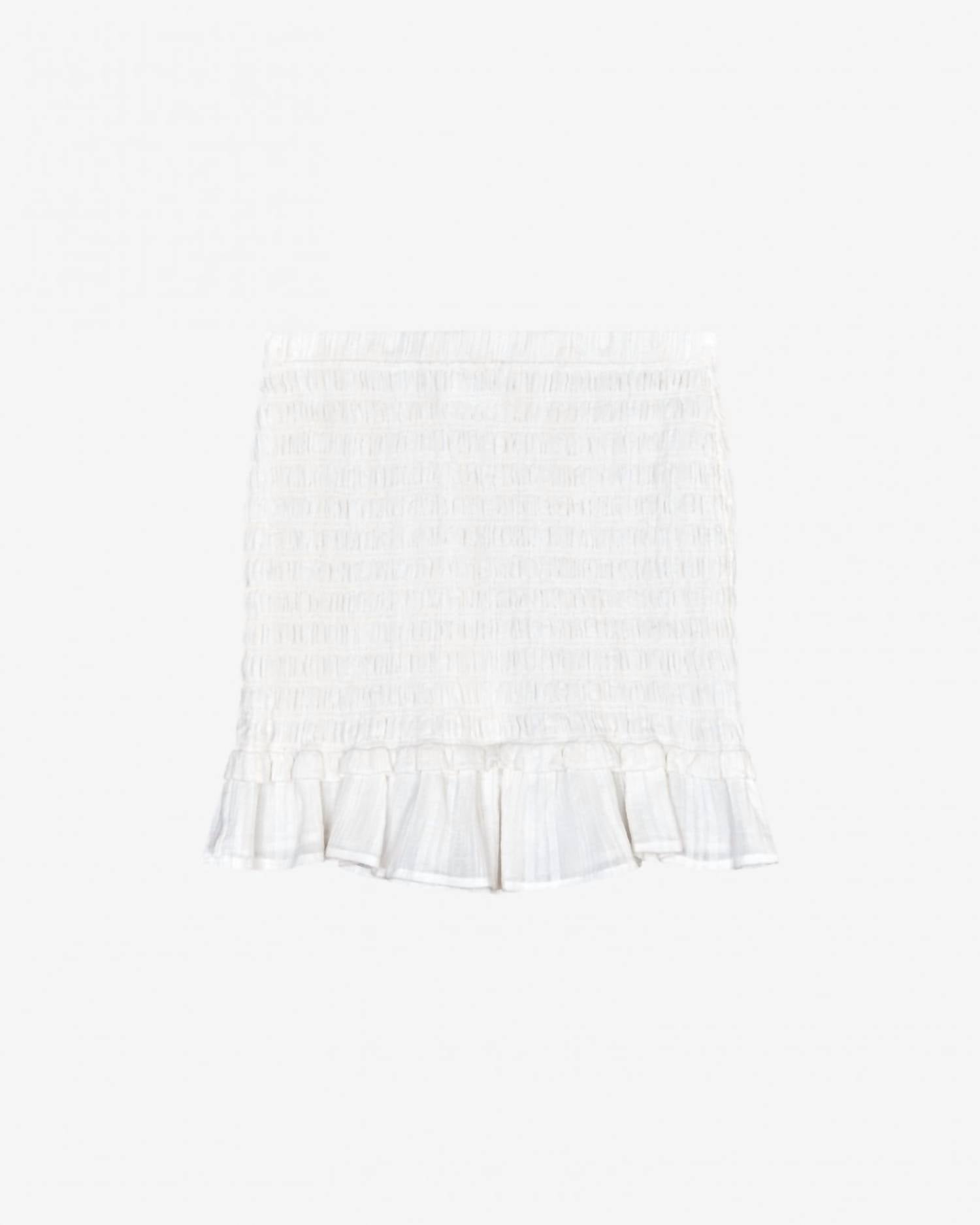 Show just the right amount of leg in this fit flattering mini. Discover the Dorela Mini Skirt by ISABEL MARANT, a chic and minimalist essential for the modern woman's wardrobe. This textured, cotton-blend mini skirt in crisp white embodies a simple yet sophisticated style. It's designed for easy wear with a pull-on closure and is perfect for holiday parties or spring occasions. Ideal for those who appreciate a refined, timeless look.