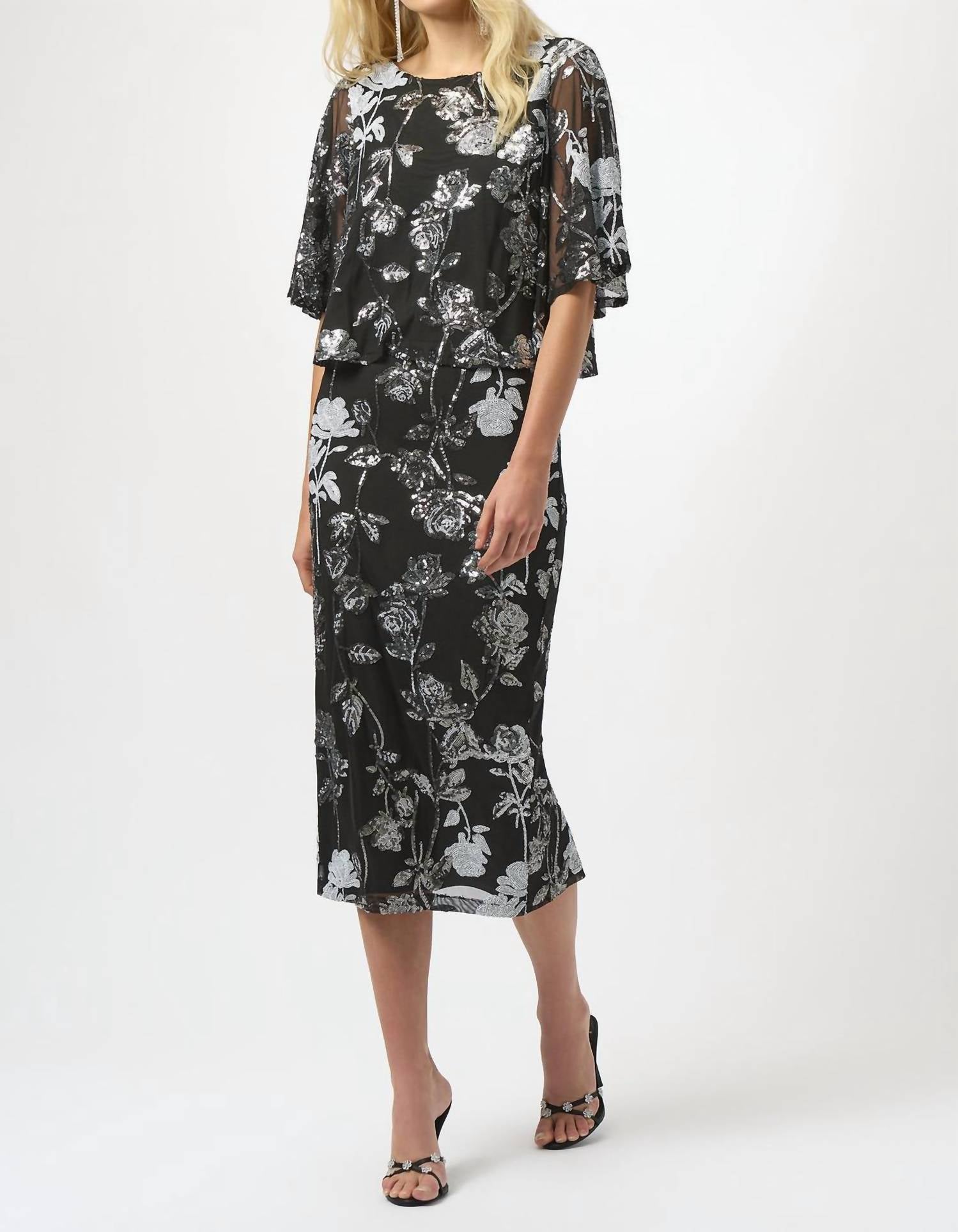 Joseph Ribkoff - Sequin Embroidered Floral Print Pencil Skirt