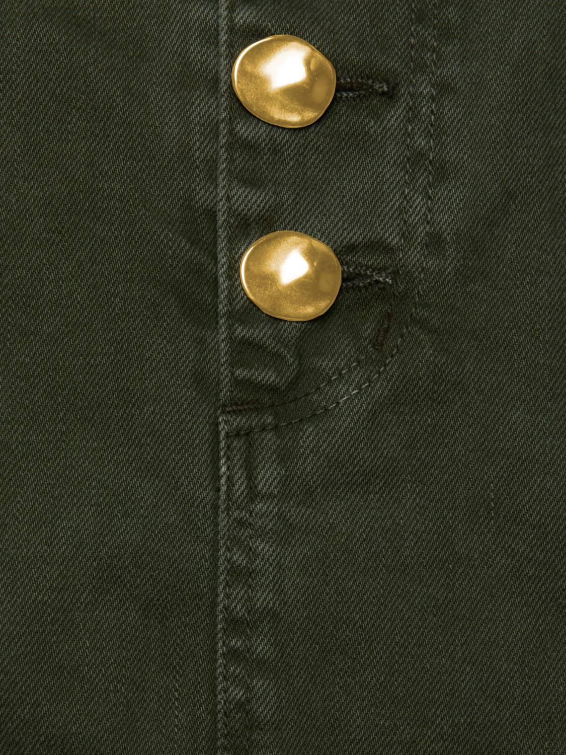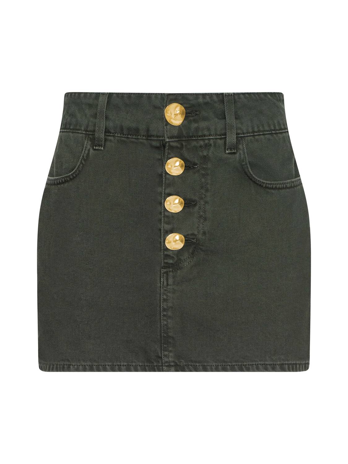 Tuck in your favorite tee for a more laid-back vibe. Introducing the Solene Denim Mini Skirt by L'Agence in a chic Picholine hue, striking the perfect balance between utility and sophistication. With a flattering 12.75" length from waist to hem, this skirt is crafted from 100% premium all-cotton denim for a comfortable fit. It features a wide waistband, a western-style back yoke, and convenient front and back pockets. The hammered gold button closure adds a touch of glamour to this versatile piece, ideal for pairing with both casual tees and elegant blouses.