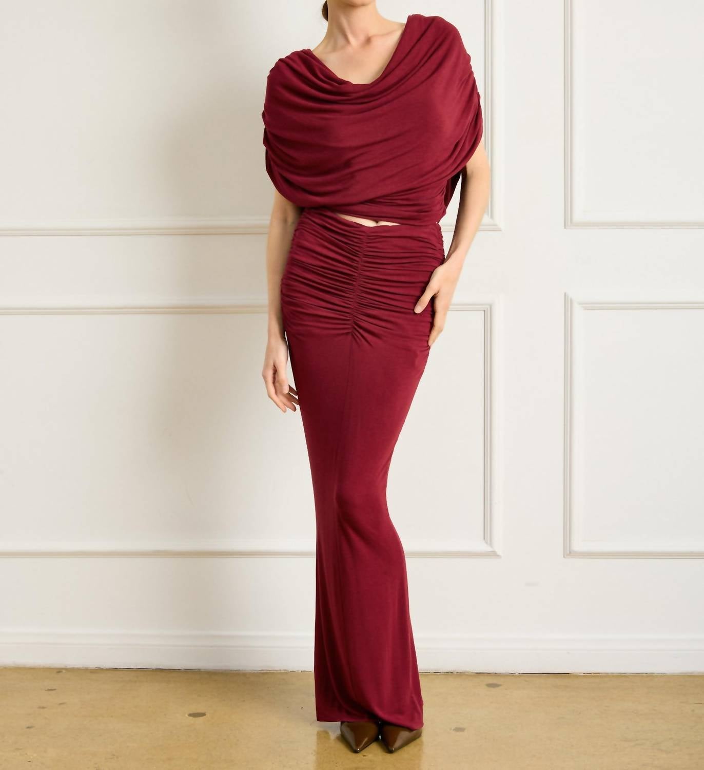 Who doesn't love a good maxi skirt? Introducing the Women's Mazzy Knit Long Skirt by Line and Dot, a stunning addition to your dinner party wardrobe. This maxi skirt is crafted from luxurious rayon, offering an elegant A-line silhouette in a striking burgundy shade. Care instructions specify dry cleaning to maintain its refined appearance. Perfect for a springtime occasion with no pockets and unrestricted by closure details, embodying a maximalist trend. 66% rayon, 28% acrylic, 6% spandex