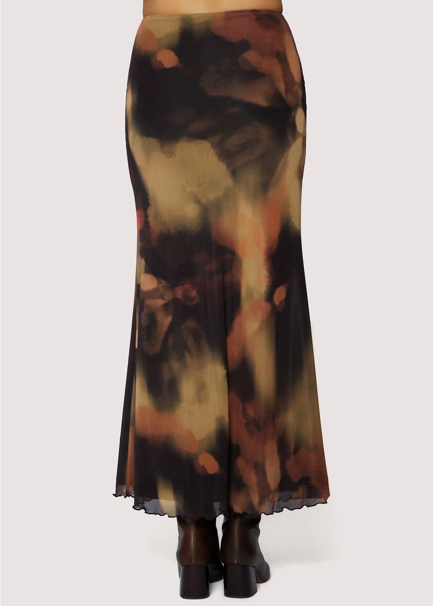 Flowy, comortable and stylish. This maxi skirt is a fan favorite. Embrace effortless elegance with the Luminous Shadow Mesh Maxi Skirt by LOST + WANDER, featuring an abstract pattern in seasonal colors. This women's skirt showcases a pull-on closure with an elastic waist for superior comfort and effortless movement. Made from lightweight materials, it captivates with a slightly flared hemline. This patterned skirt is machine washable, ideal for spring vacations and boho chic occasions.