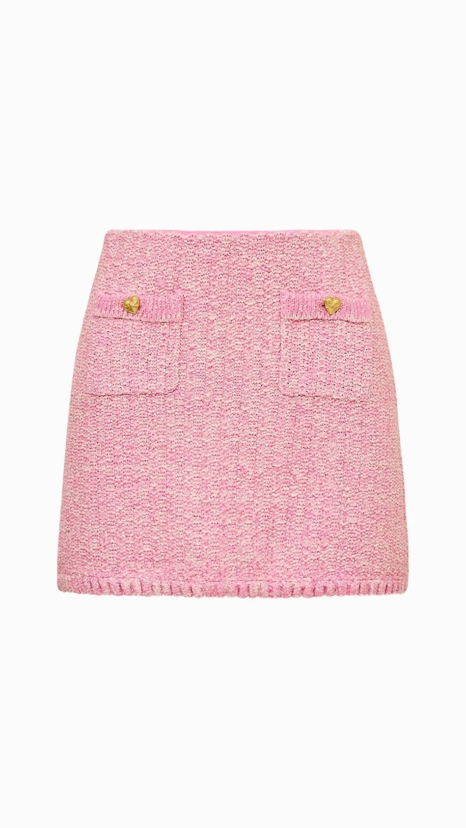 Tuck in your favorite tee for a more laid-back vibe. Introducing the Ellianna Skirt by LoveShackFancy, a chic Candy Pink Melange mini crafted from a luxurious cotton blend. This 13.25" skirt showcases a soft white-and-pink tweed with a touch of metallic shimmer, offering a romantic and polished look. The A-line silhouette ensures a flattering fit, complemented by a comfortable elastic waistband and practical functional pockets. Closure: Pull-on style. Care: Dry clean only.