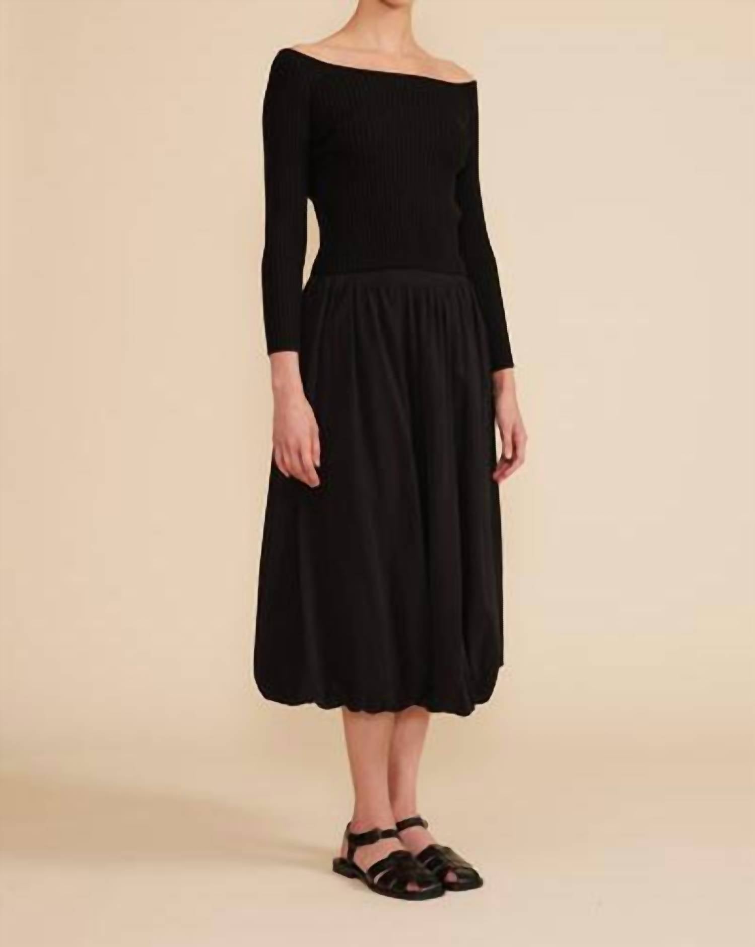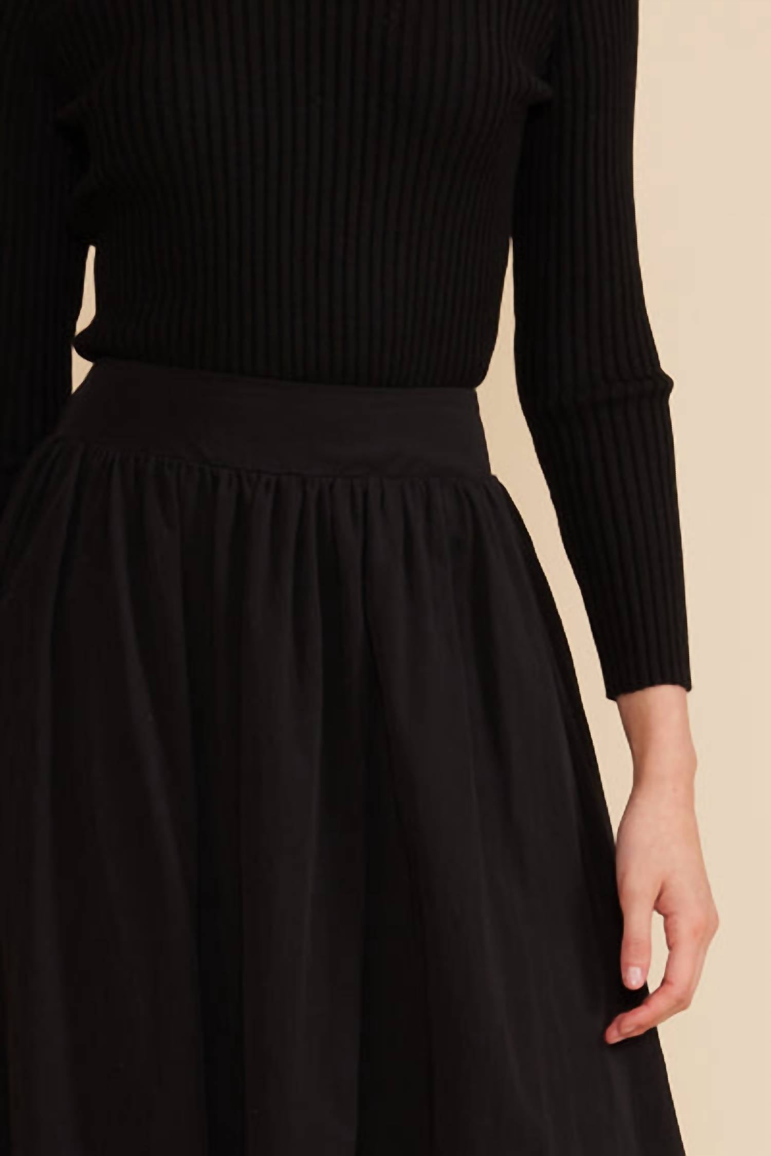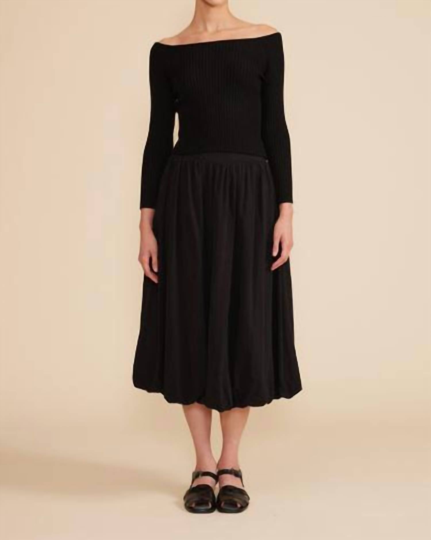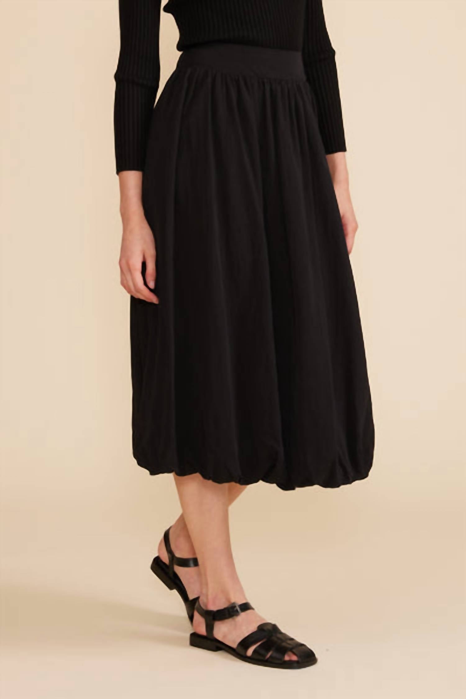 The midi length skirt is here to stay and we especially love this style. Elevate your holiday party ensemble with the Bubble Midi Skirt by LUCY PARIS, a perfect blend of minimalist style and festive flair. This women's black skirt features a comfortable stretchy back waistband and a chic bubble bottom, ensuring both elegance and ease. Crafted from a solid black composition of 73% Rayon and 27% Nylon, its pull-on design is ideal for effortless dressing. As a sustainably-conscious piece, we recommend dry cleaning to maintain its quality and longevity.