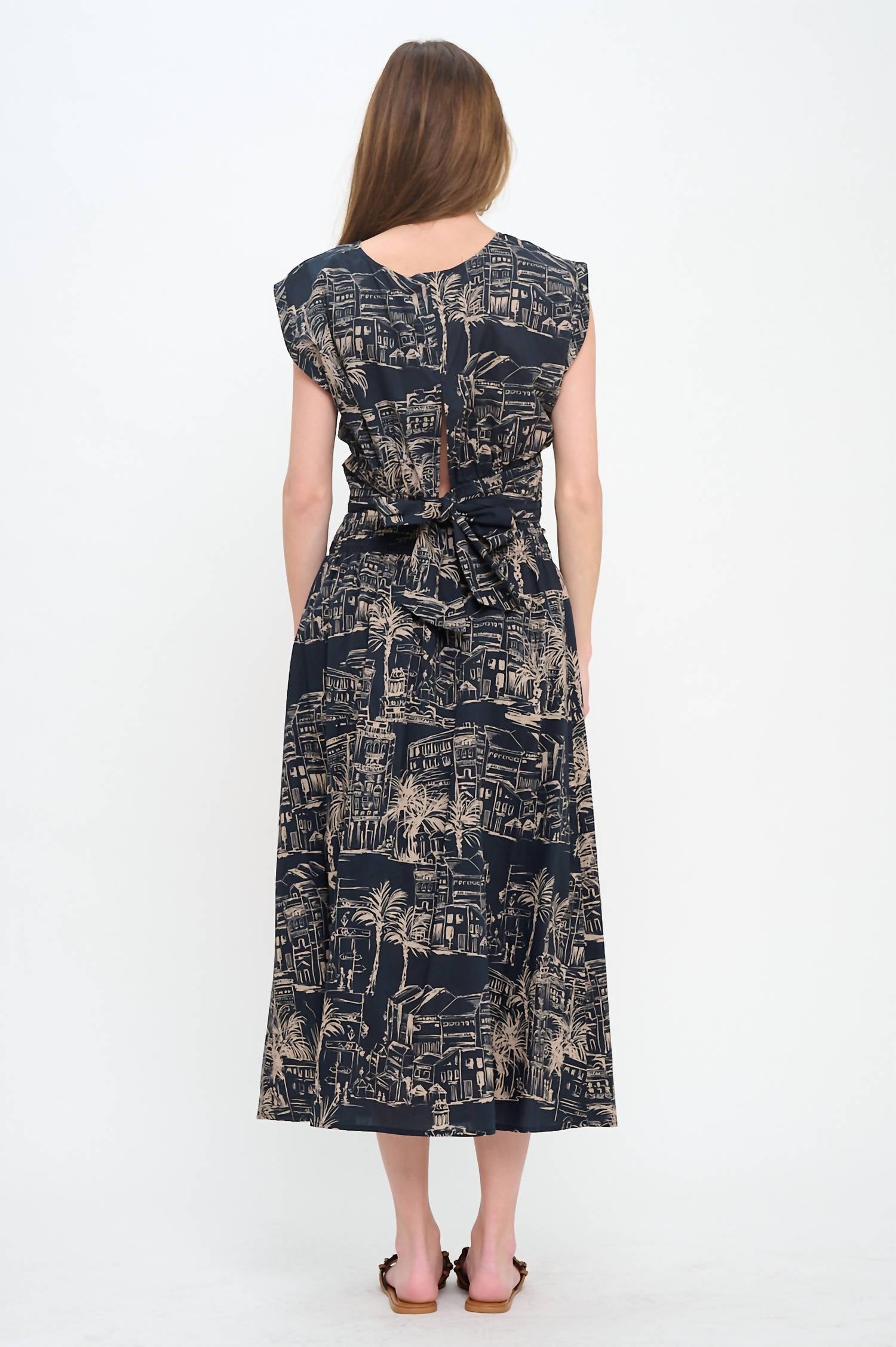 The Santorini Sketch Top And Skirt Set by Meet Me in Santorini offers a charming ensemble in a deep Midnight hue, perfect for refined elegance. With its patterned design and delicate tie-back detail, this set is crafted from 100% Cotton for comfort and style. Made for women, it ensures easy wear with a pull-on closure. Care is straightforward with machine wash instructions for effortless maintenance.