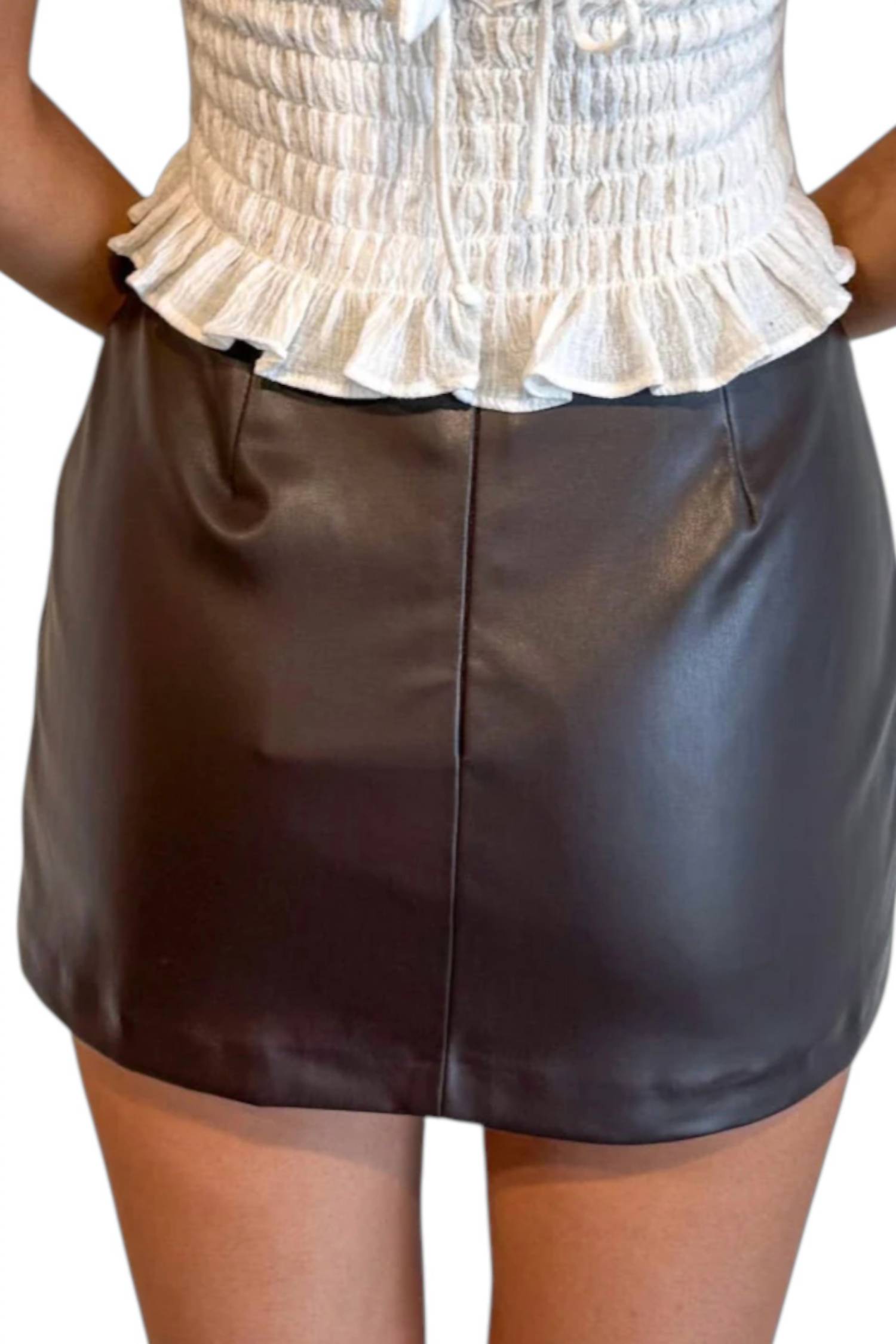Show just the right amount of leg in this fit flattering mini. Introducing the OLIVACEOUS Vegan Leather Skirt with Shorts, a chic brown mini skort that blends edgy style with ultimate comfort. Crafted from 60% PU and 40% Polyester, this high-waisted skort features a sleek vegan leather exterior and built-in shorts for added coverage and ease of movement. This solid pattern piece is perfect for creating a monochrome look and pairs beautifully with a variety of tops, from oversized sweaters to structured blazers. Care instructions recommend hand washing, line drying, and avoiding tumble drying to maintain its luxurious, buttery-soft texture.
