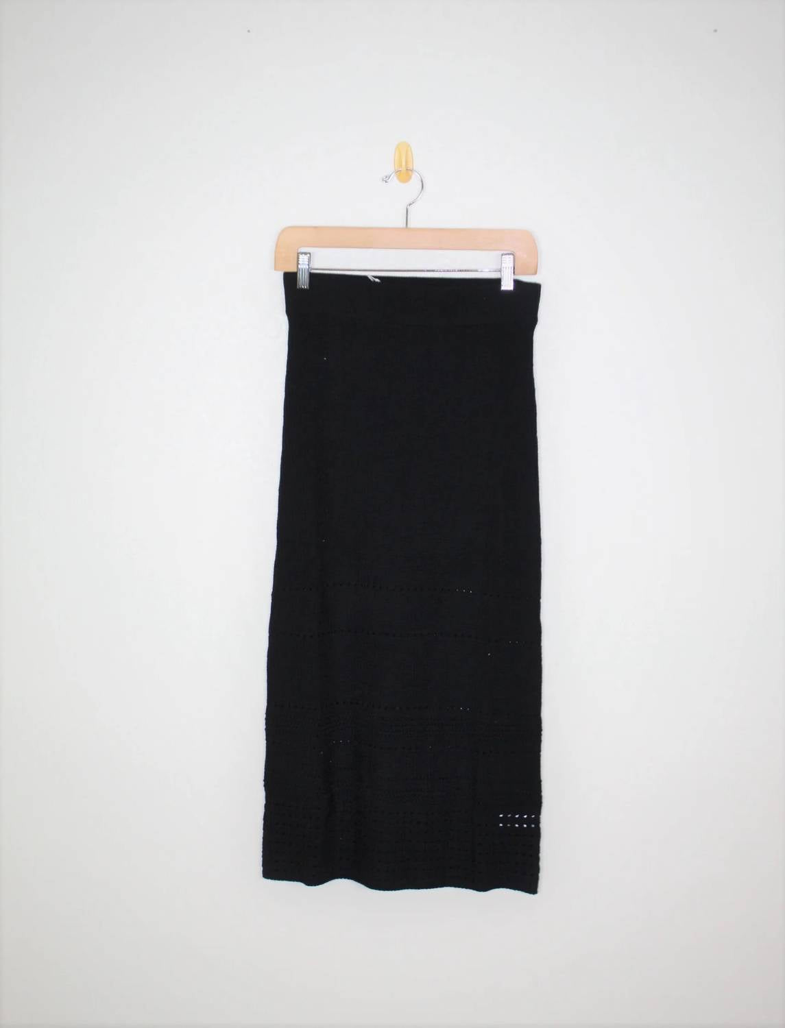 Tuck your favorite tee into this midi length skirt for an effortlessly cool look. Presenting the Heidi Skirt by Rails, an elegant choice for any evening event this fall. This textured midi skirt in chic black showcases a ribbed finish and features a practical pull-on closure. Composed of 60% cotton and 40% acrylic, it promises comfort and style, crafted in China for enduring quality. Ensure it retains its minimalist appeal by opting for dry clean care.